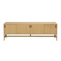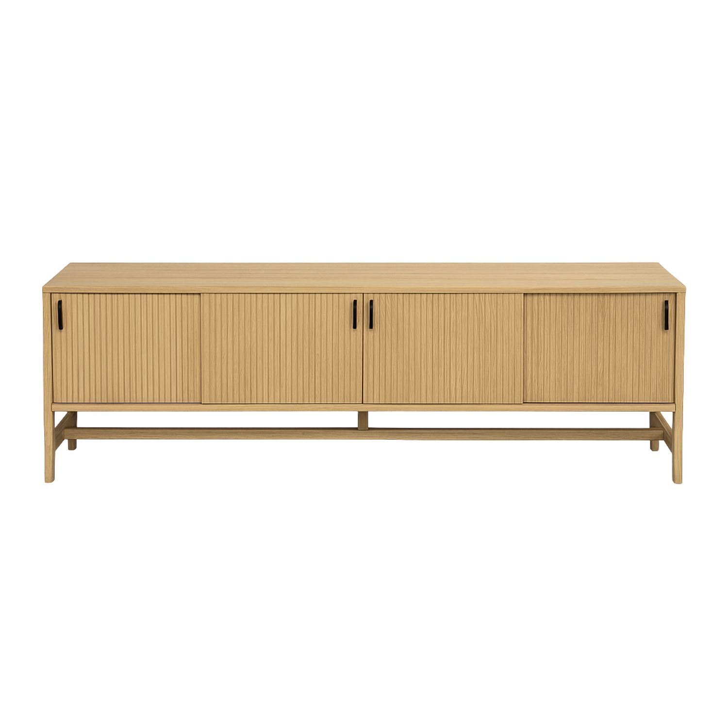 The Addison Entertainment Unit pairs a classic profile with tactile, clean-lined doors for a timeless presence in any space. Sliding panels and black metal handles add a functional edge while keeping the look refined and understated.
