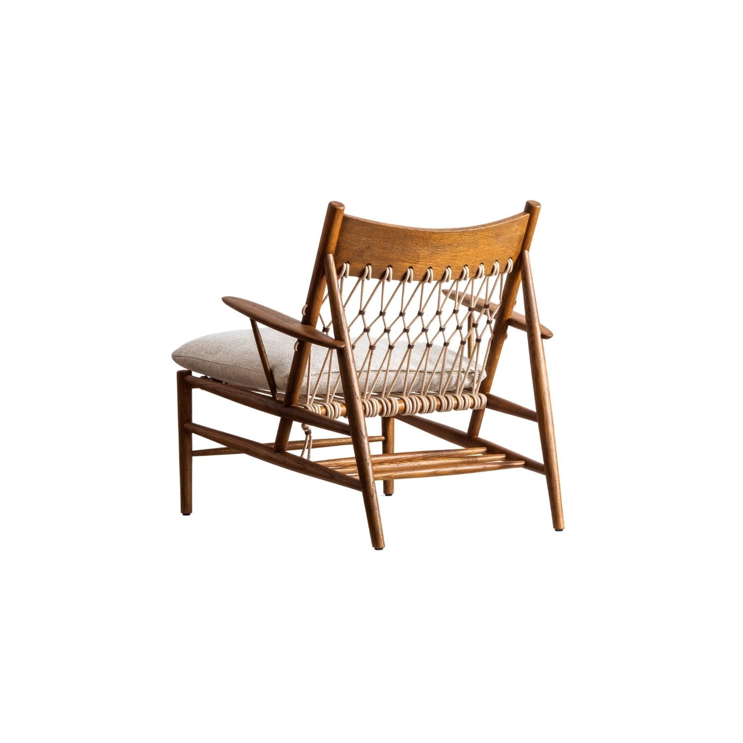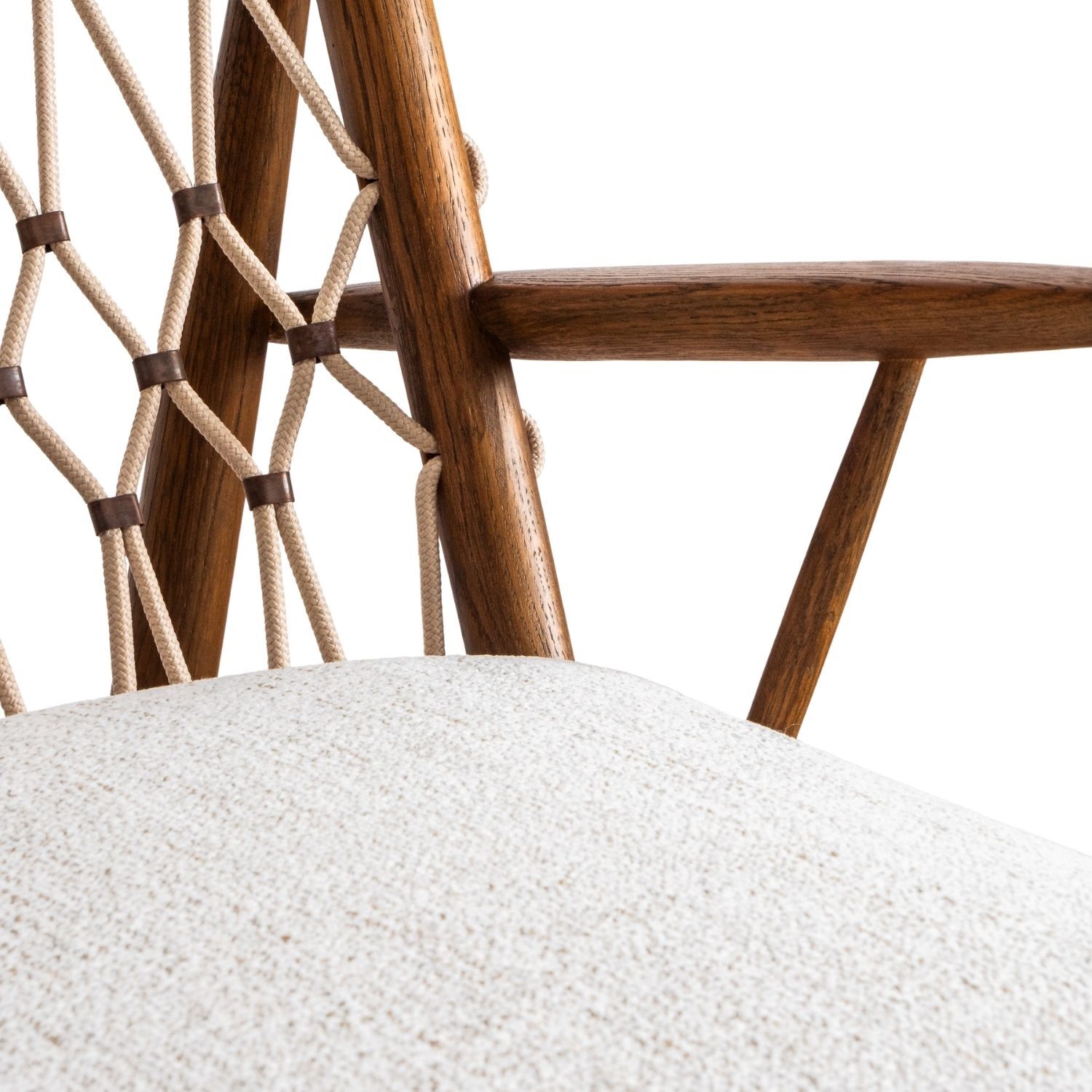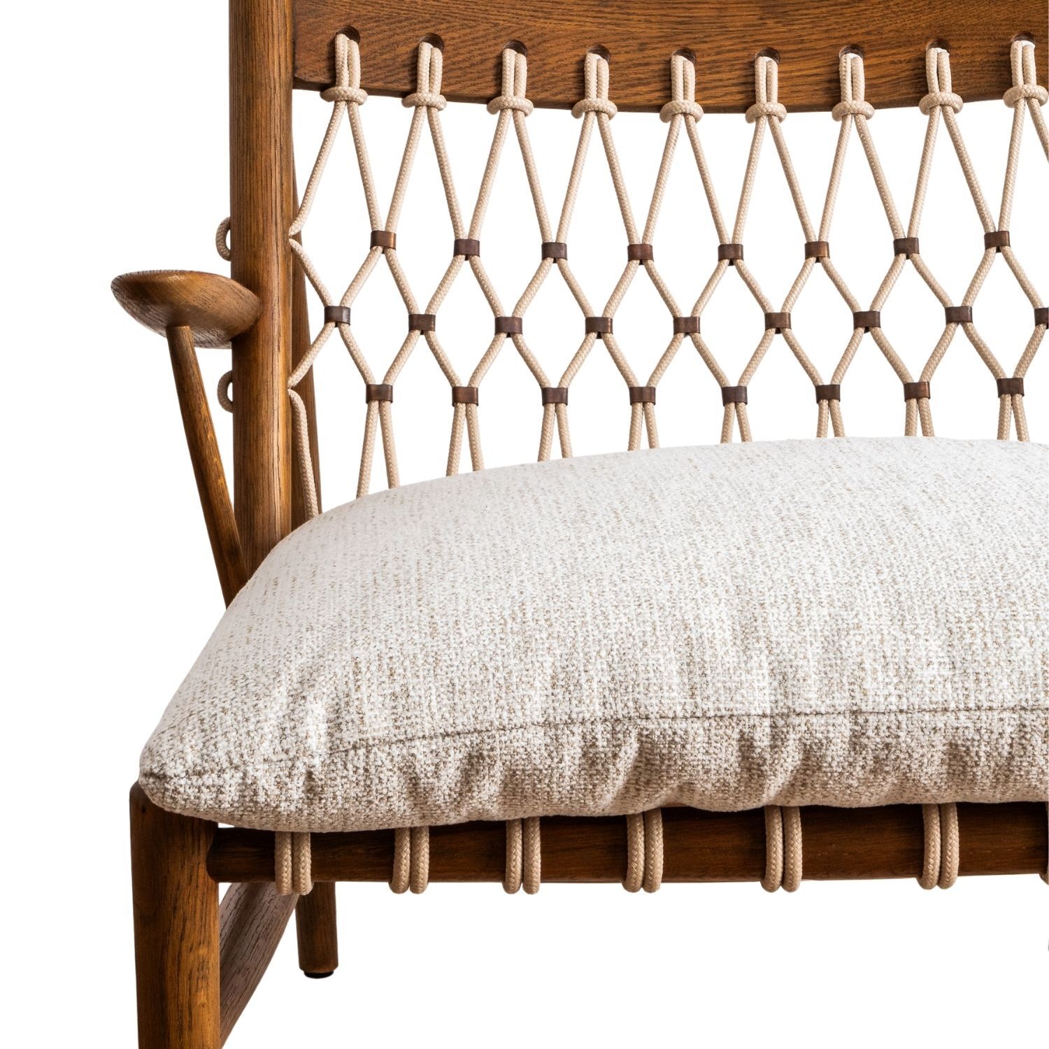 The Aero Rope Lounge Chair captures a refined balance between structure and ease with it's oak frame and geometric rope detailing. An upholstered seat cushion softens it's architectural form, offering an inviting touch for relaxed, modern living.