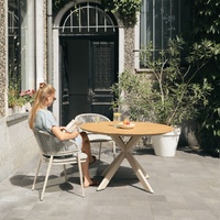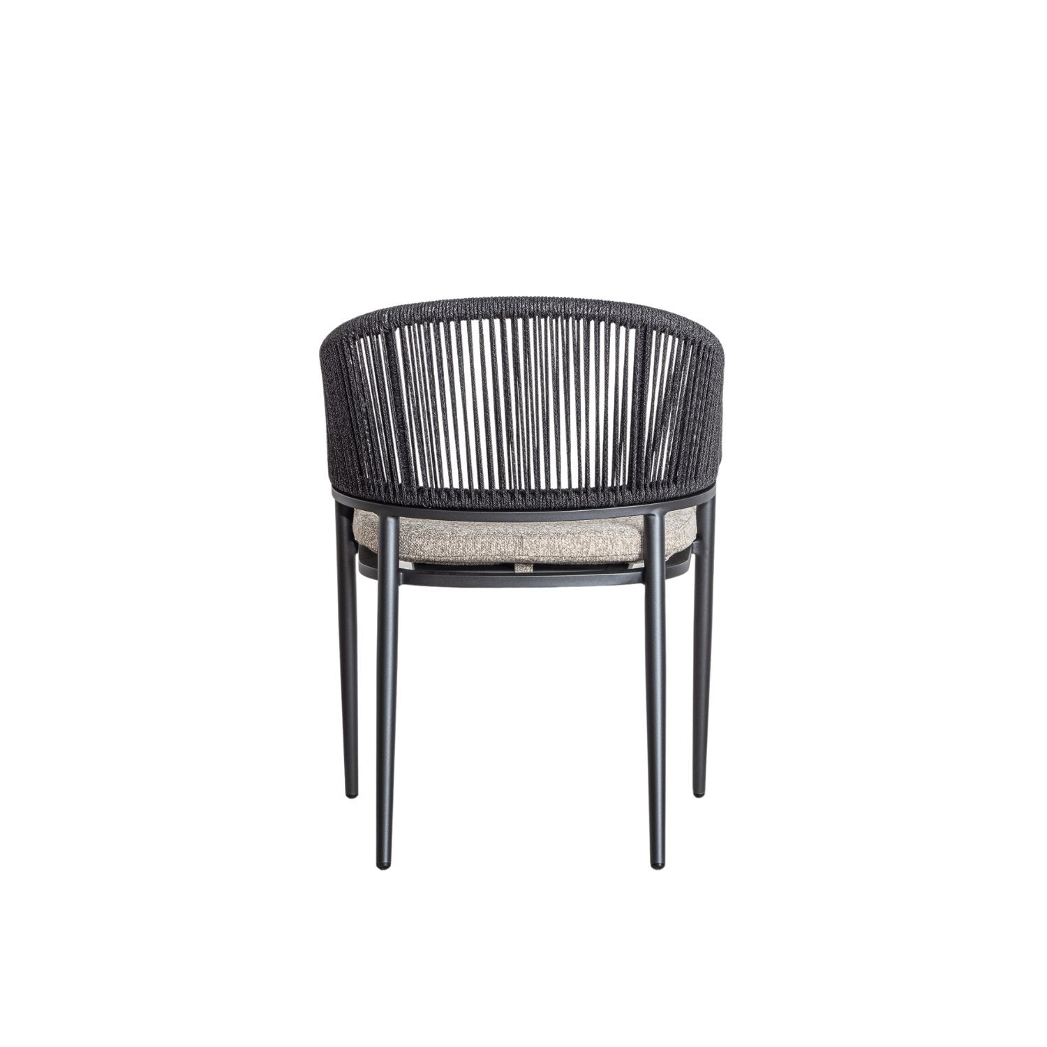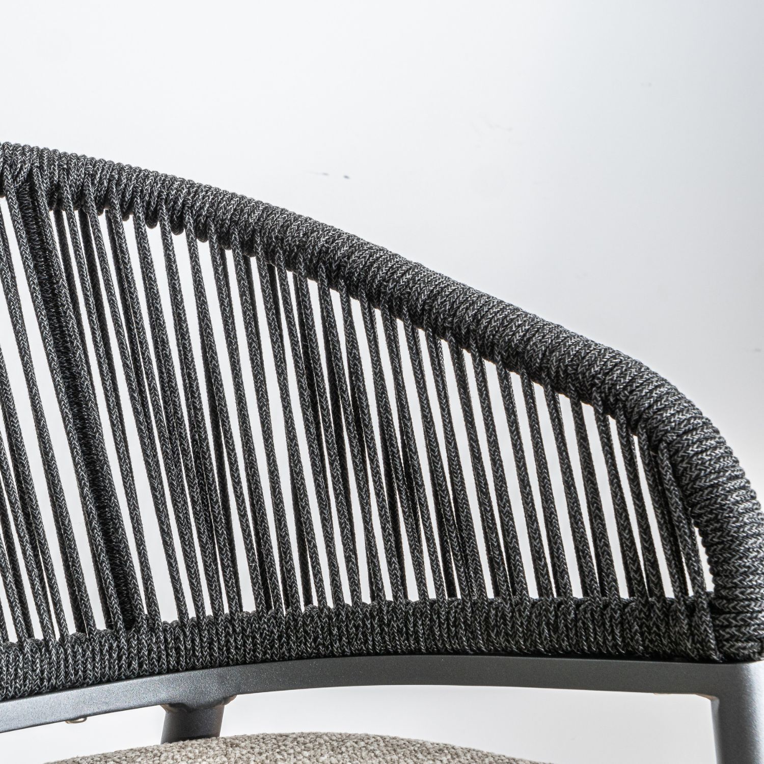 Designed with a sturdy aluminium frame and intricate rope detailing, this chair brings a sculptural quality to any outdoor setting. The curved silhouette offers a refined aesthetic, while the upholstered seat ensures exceptional comfort for long, relaxed meals. Whether styled as a standalone piece or paired with an outdoor dining table, the Alani Armchair seamlessly enhances contemporary and classic spaces alike. Elevate your outdoor entertaining with the Alani Collection.