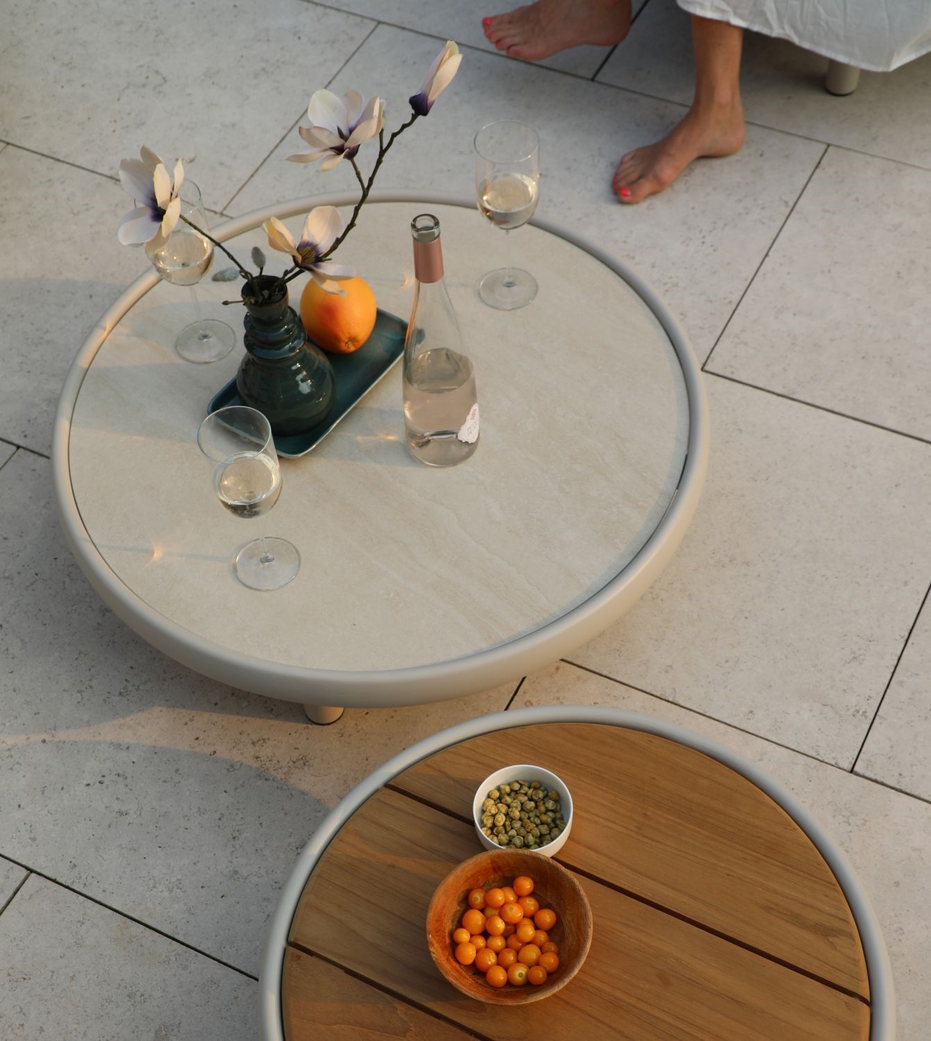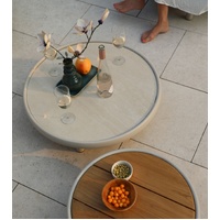 The Alani Coffee Table brings a refined, modern aesthetic to outdoor living with its sculptural form and timeless design. Crafted with a durable alumnium frame and a natural teak tabletop, this table seamlessly blends strength with organic beauty. Its rounded silhouette creates a soft, inviting presence, making it a versatile addition to garden lounges, poolside areas, or contemporary patios. Designed to be styled alone or nested with the metal option. The Alani Coffee table  offers both functionality and visual appeal.