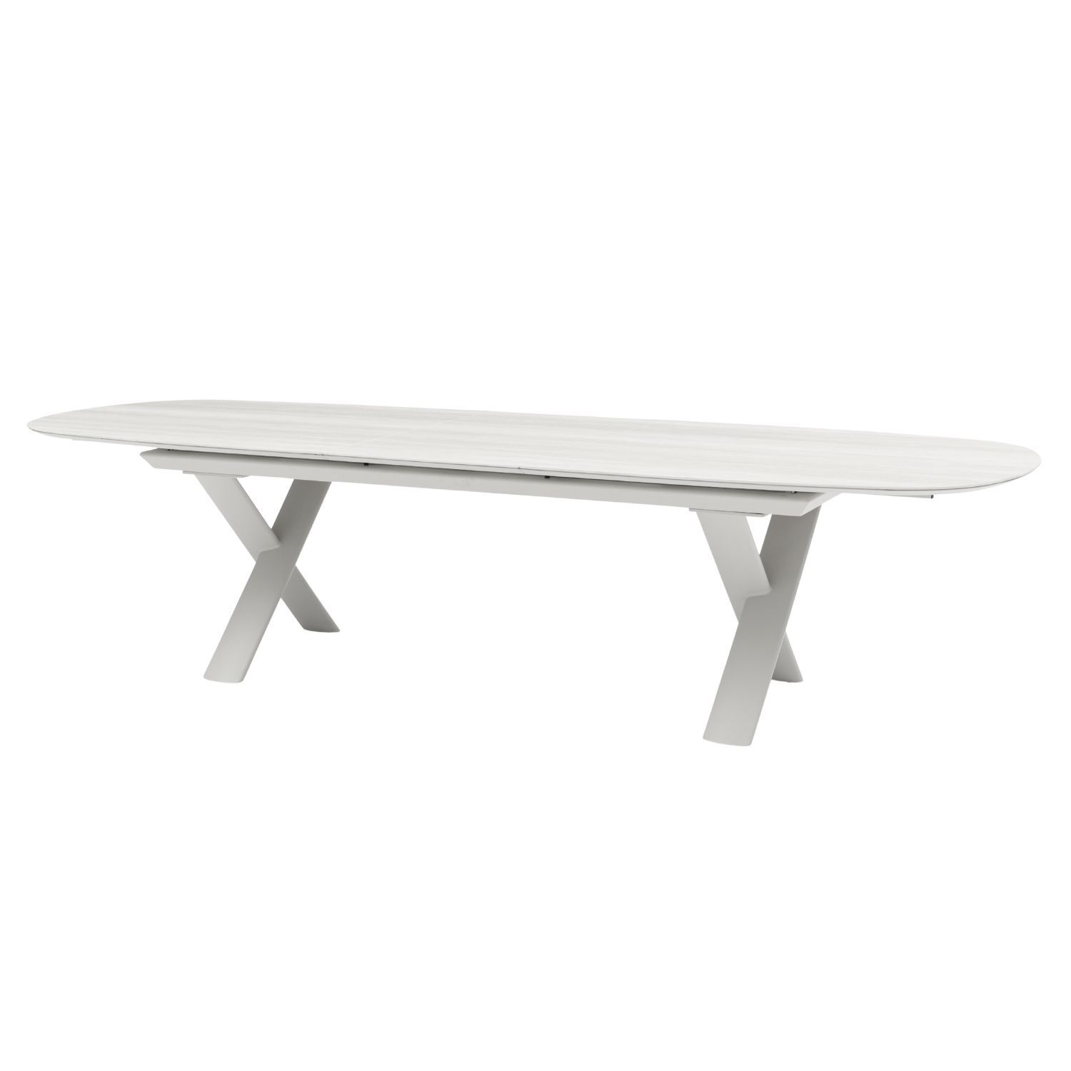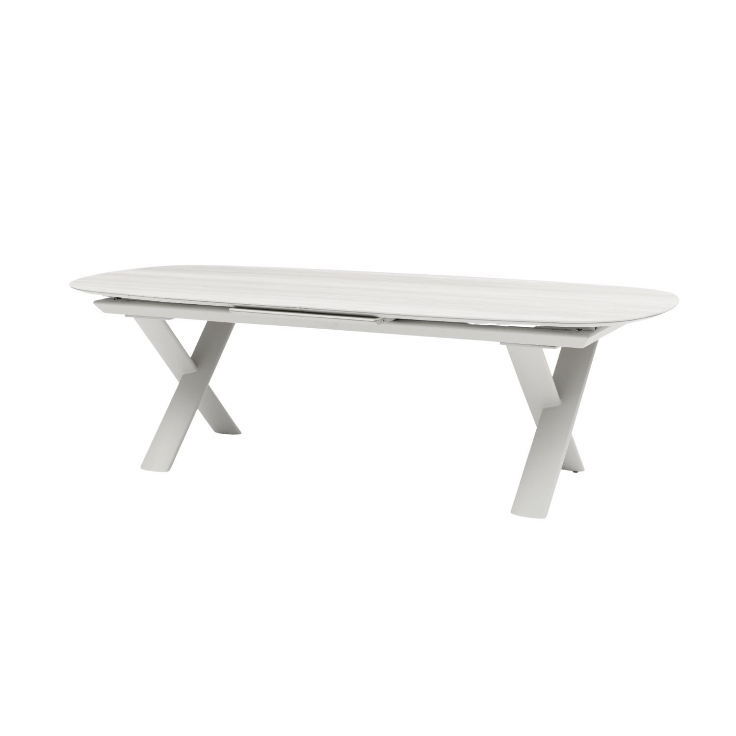 Meet Alba, an outdoor extension dining table designed for living. With a sleek sliding mechanism, it expands effortlessly, transforming with a simple glide to welcome more guests. The 250cm model extends by 60cm to a generous 310cm, adapting seamlessly to any gathering. An oval ceramic top anchors the design, paired with defined legs that feel strong yet softened by neutral tones. Alba adds flexibility, style and ease to outdoor dining, making every occasion feel considered.