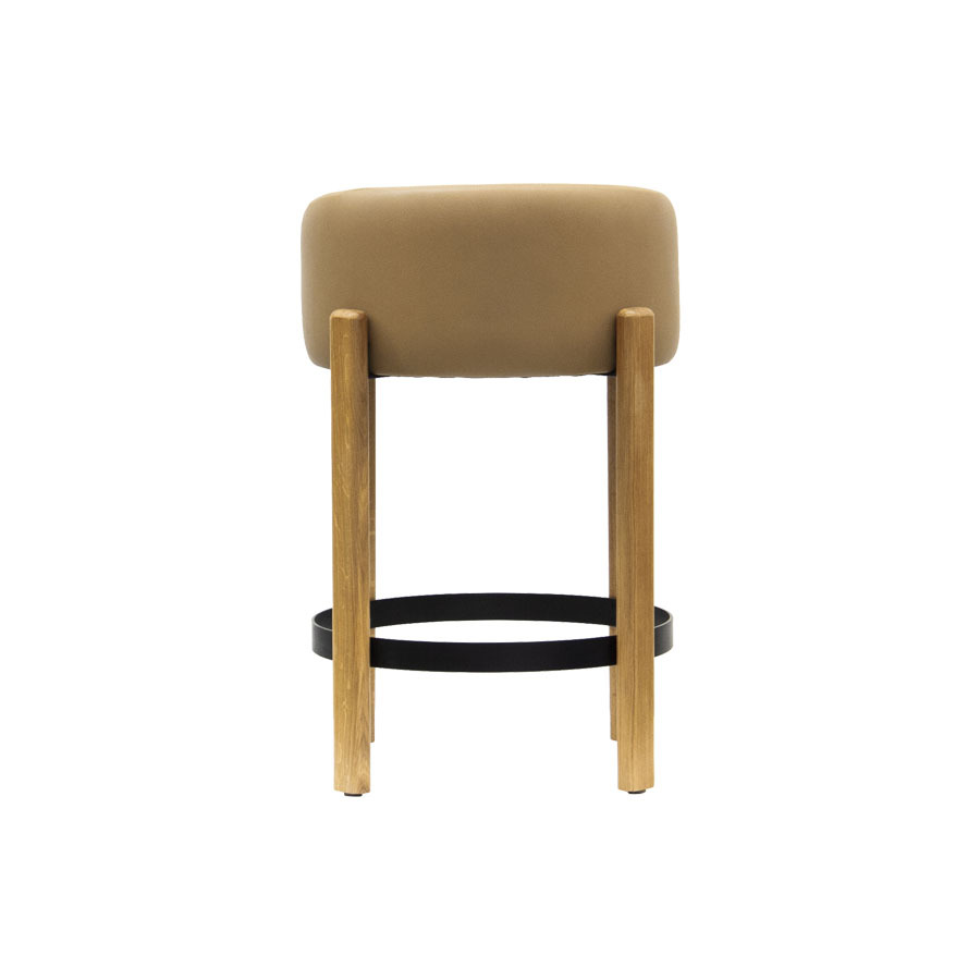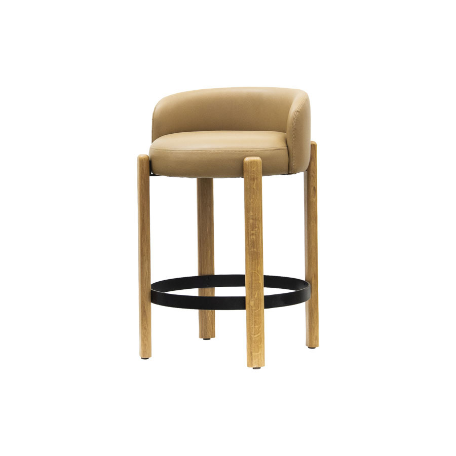Colour: Tan PU upholstered seat / Natural oak base / Black powdercoated footrest