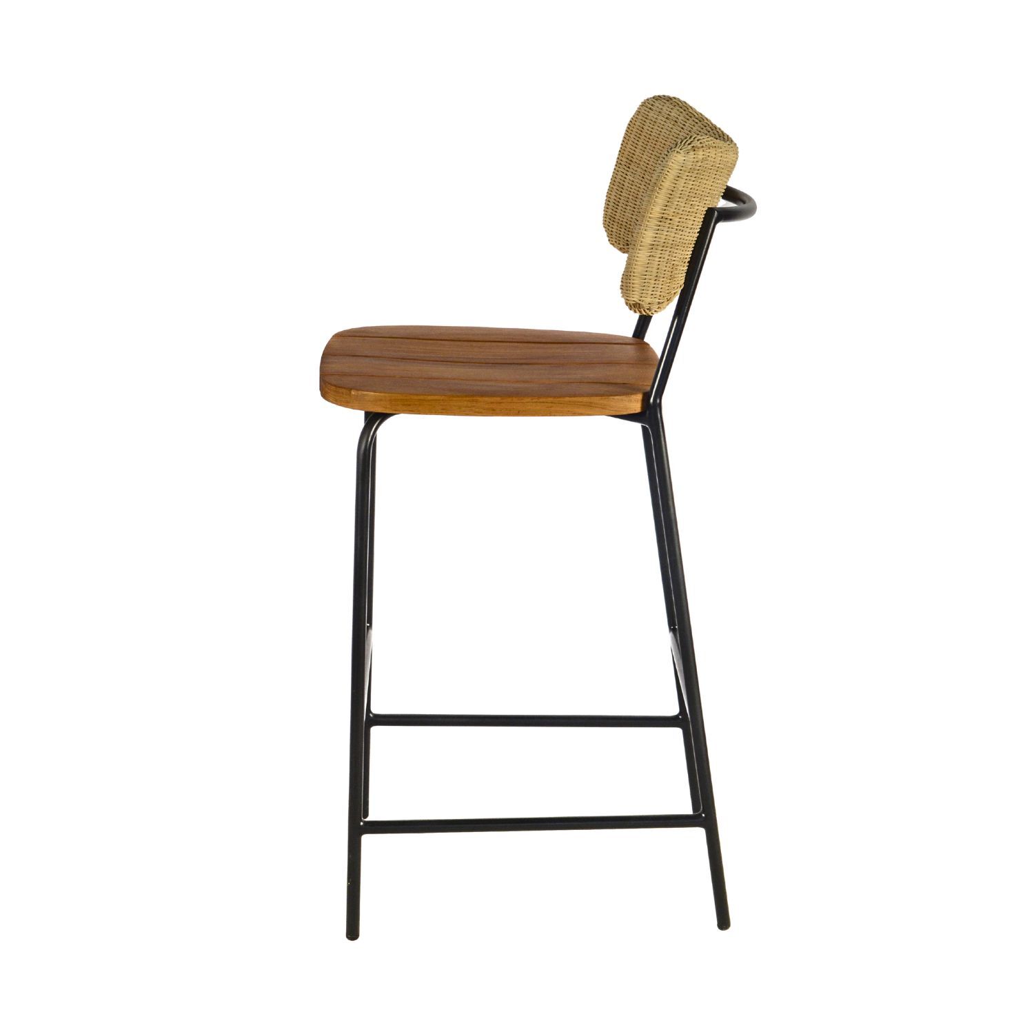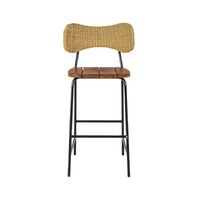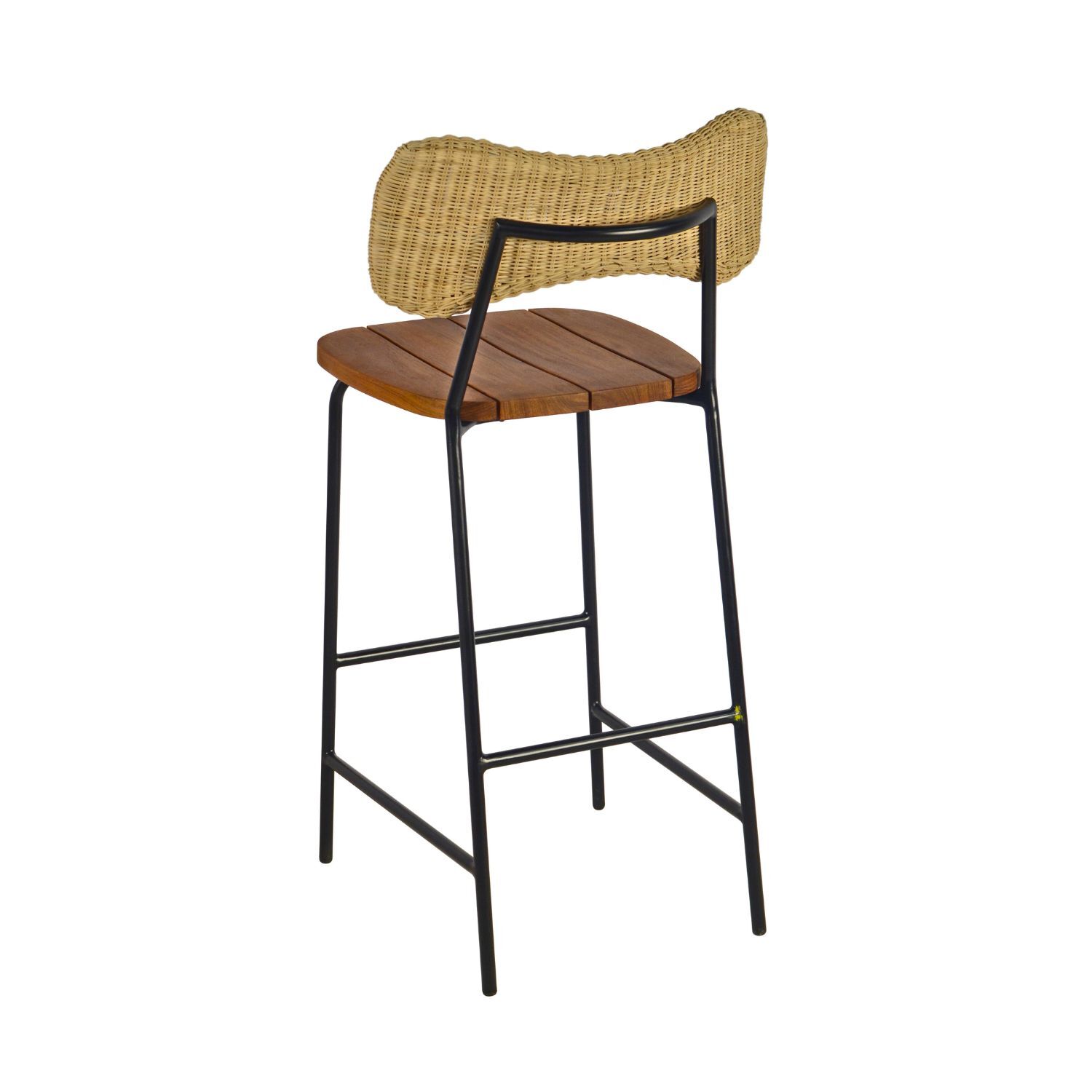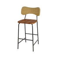 The August Bar Stool seamlessly blends modern sophistication with rustic charm, making it an ideal addition to any stylish outdoor space. Crafted with a sturdy metal frame, a contoured wooden seat, and a woven backrest, it offers both comfort and durability for luxurious outdoor gatherings.