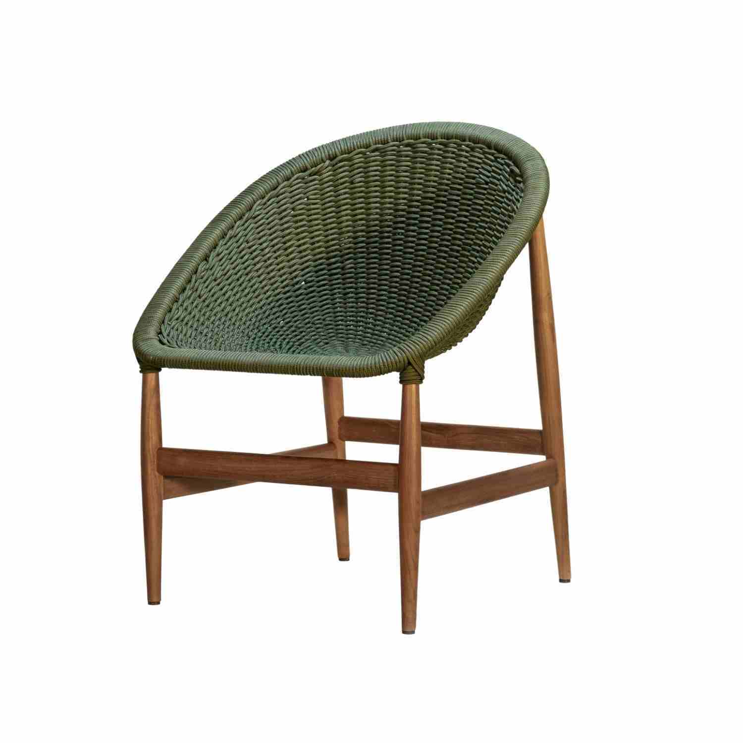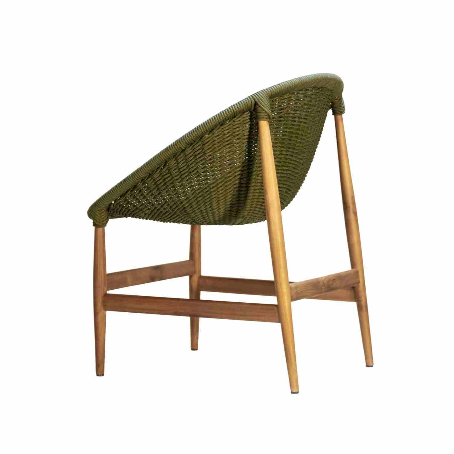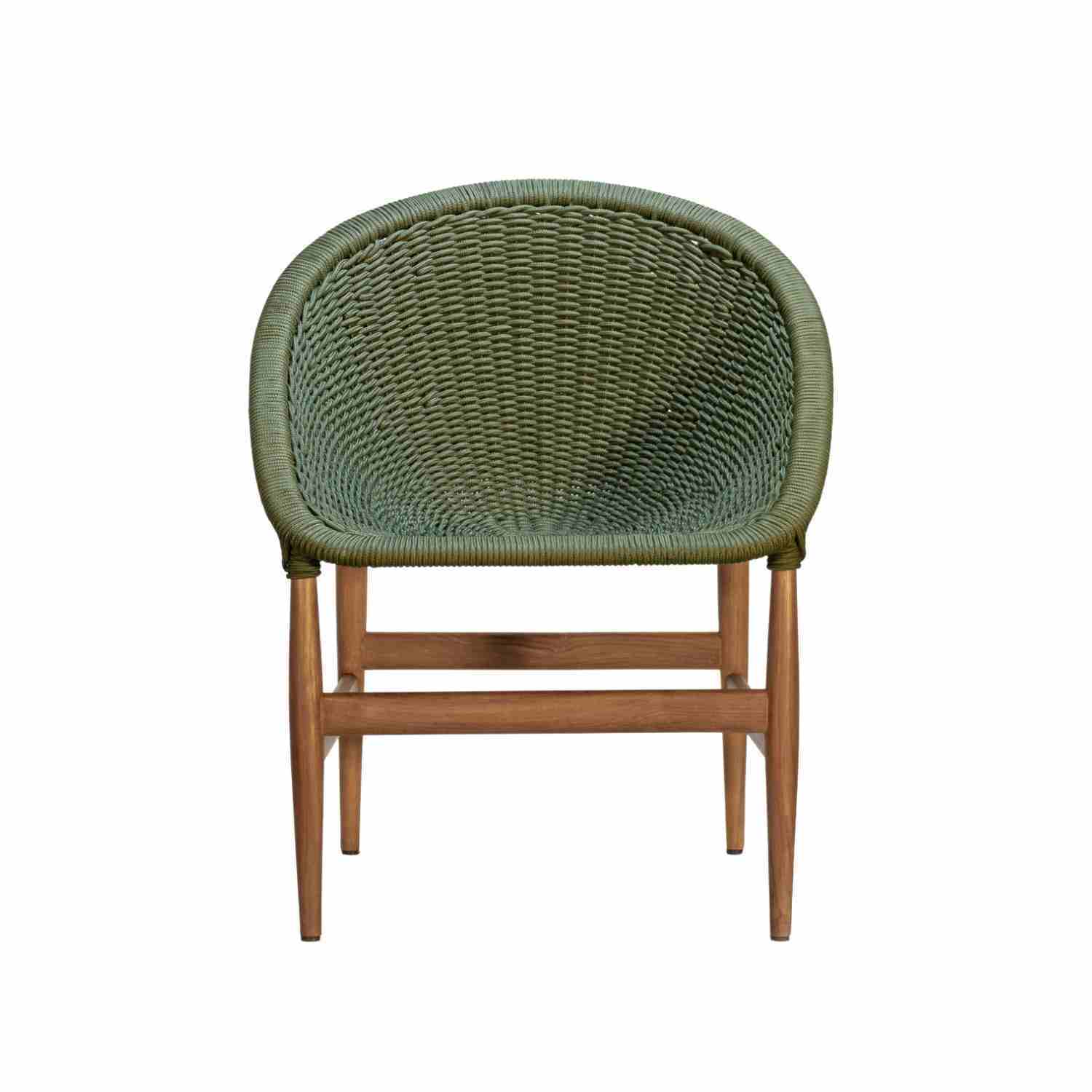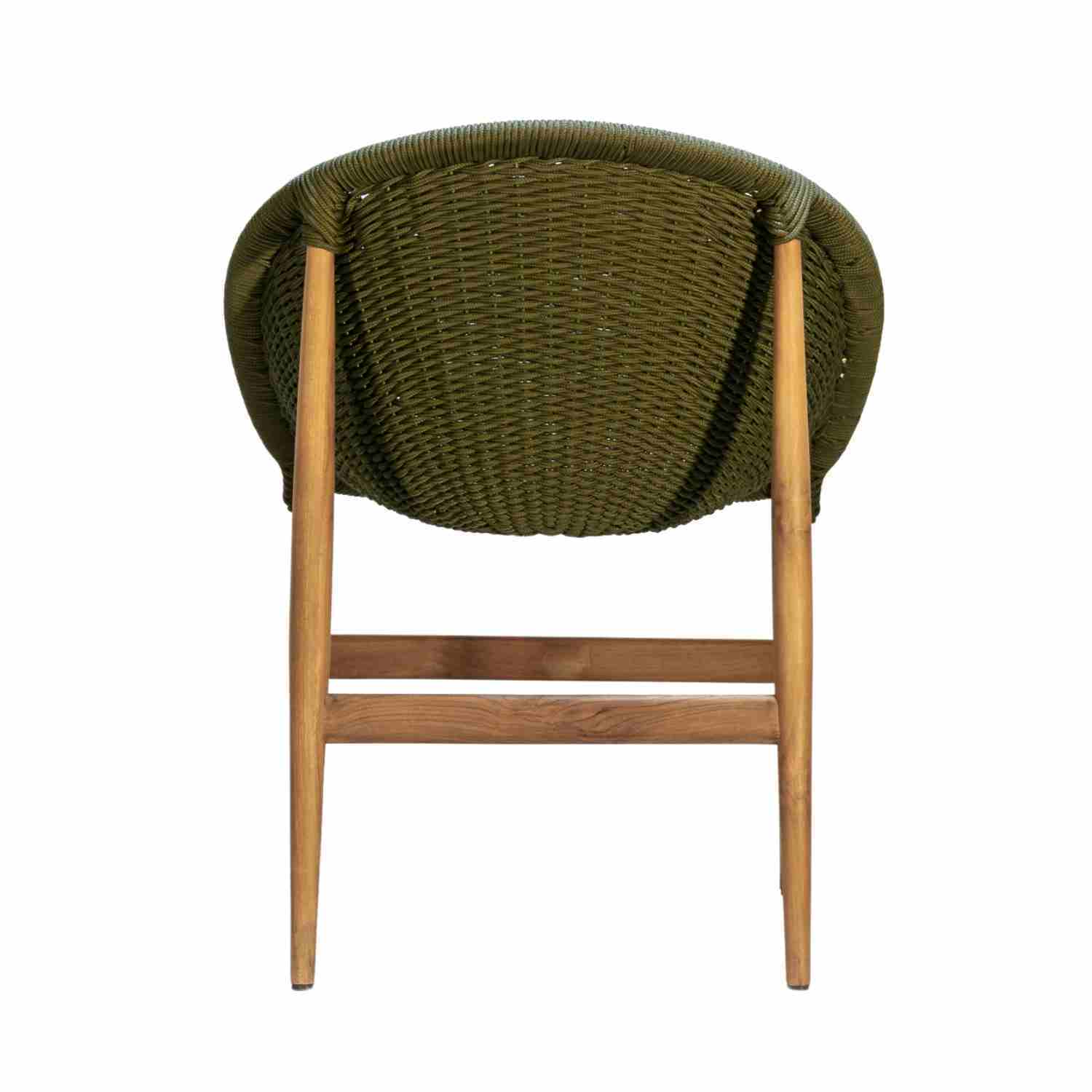 Discover the versatile Ava Armchair, a perfect choice for indoor and outdoor settings. Its gracefully curved profile enveloped in olive green rope, supported by teak legs, offers an inviting seat that's as comfortable as it is stylish. Elevate your dining experience and express your unique taste by customising this armchair in your choice of stains and rope colors. Make a statement at the dining table with the Ava Armchair.