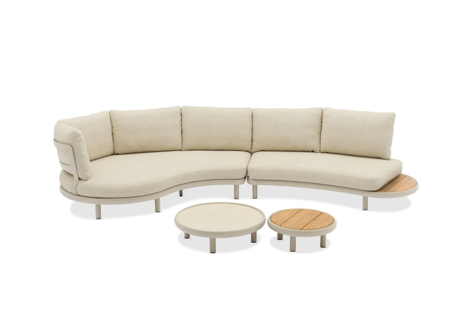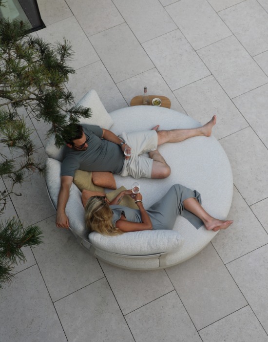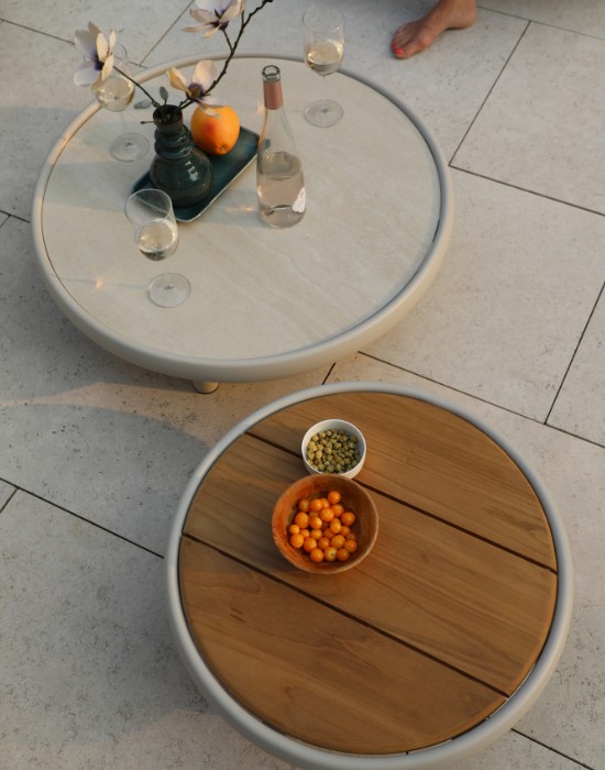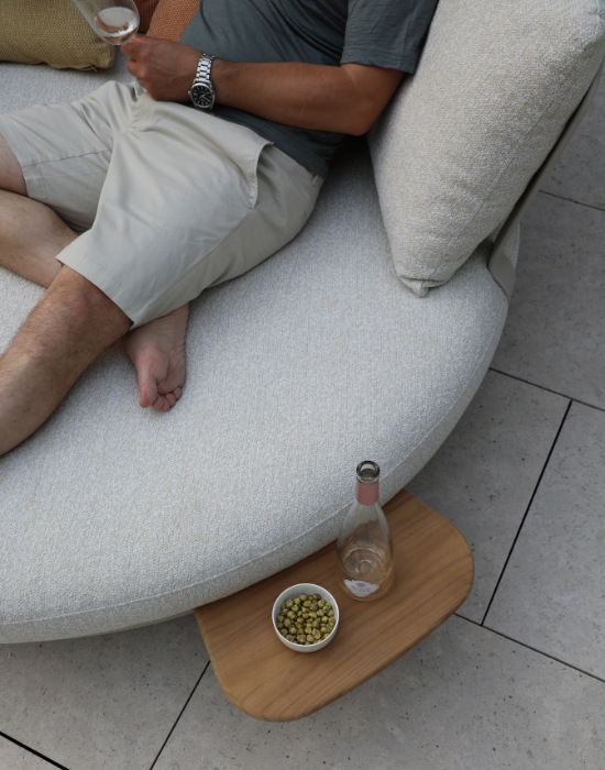 The collection also features a daybed, single-seat lounge, dining table, dining chair, and curved sofa. In addition to these main pieces, the collection includes several movable fly side tables, designed to seamlessly fit along the sides or front of the elements, offering enhanced flexibility.To add a playful yet refined touch, beautifully crafted trays have been designed to perfectly complement and elevate the range’s overall look and feel.