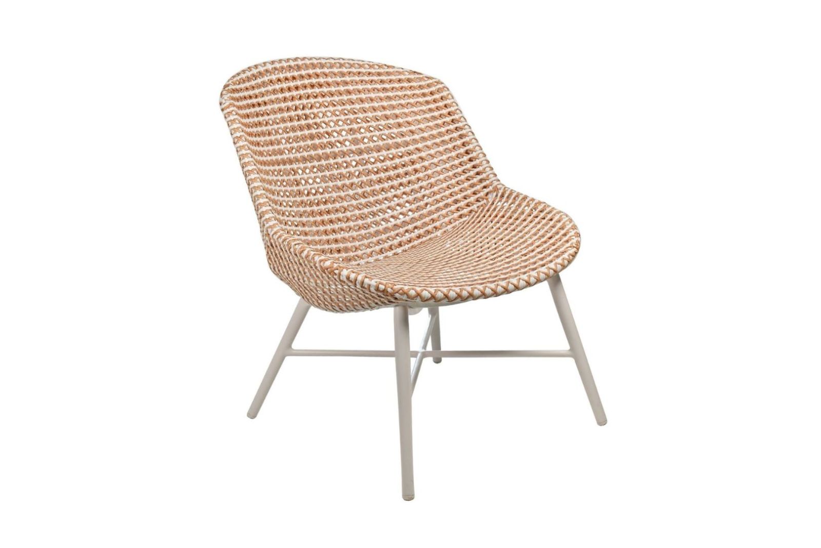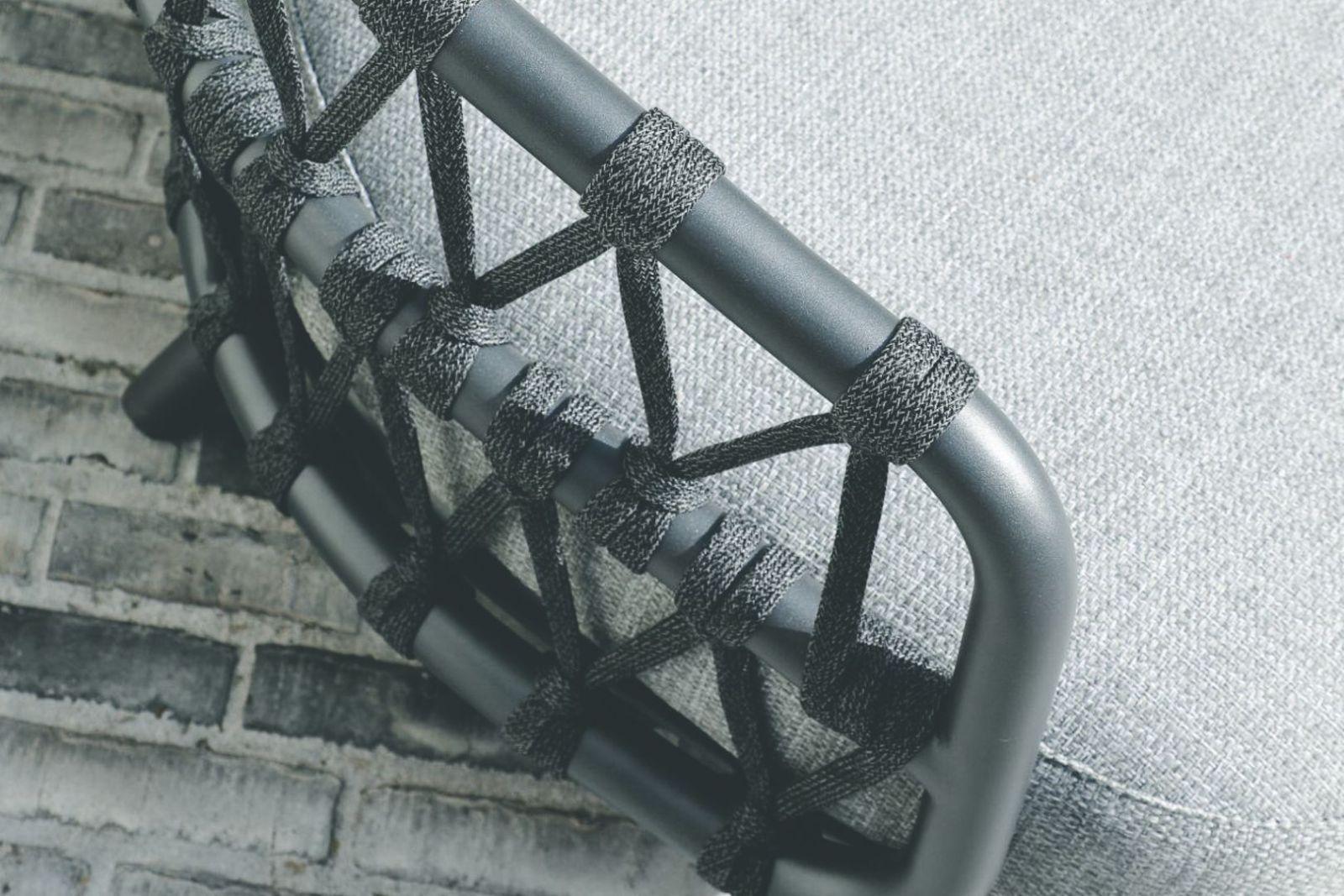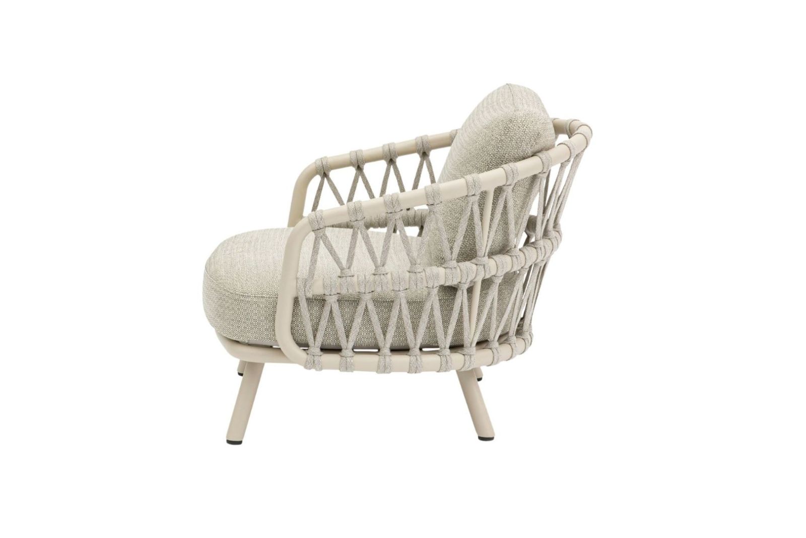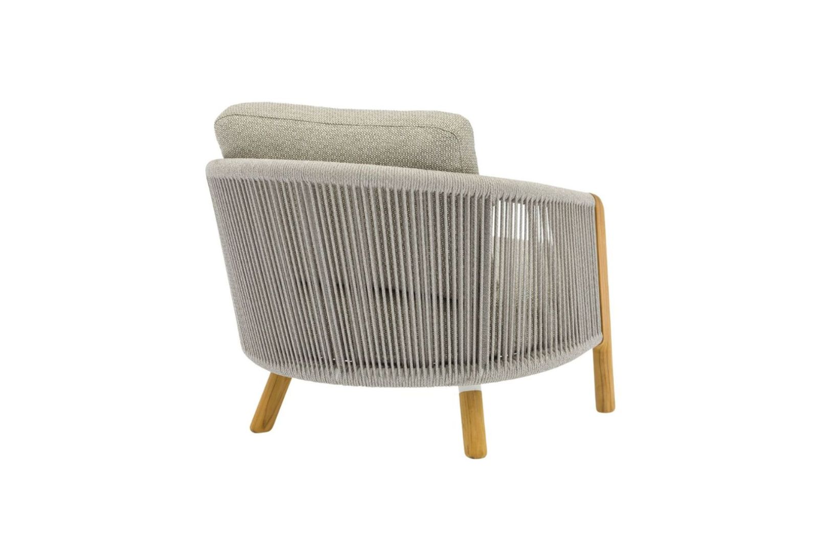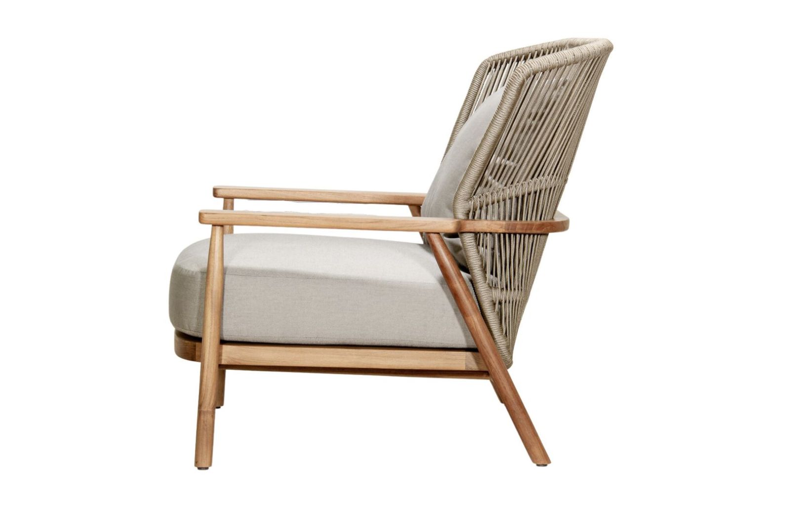 The Cowie Lounge Chair featured here with handwoven stone coloured rope and luxurious Spectrum Dove upholstery. It is available in a wide range of rope and fabric options.