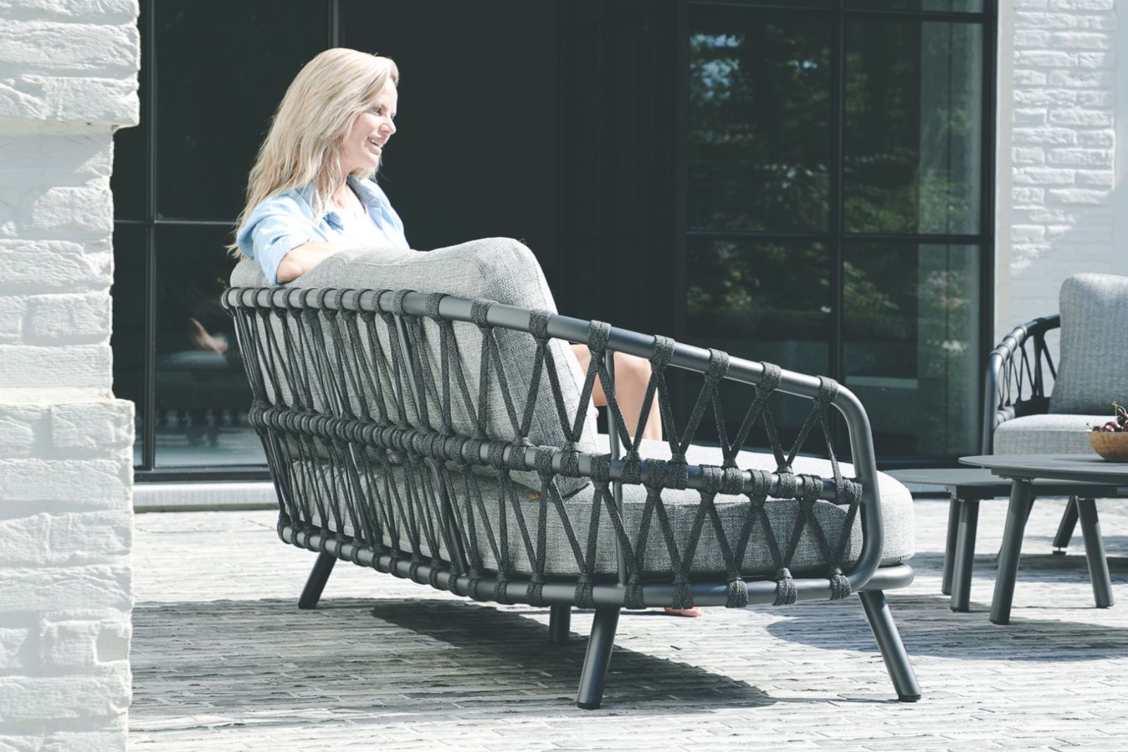 Designed for enduring outdoor comfort, the Calli Sofa prioritises your relaxation with a sleek metal frame that is both visually stunning and remarkably light, facilitating easy rearrangement to meet your changing requirements.