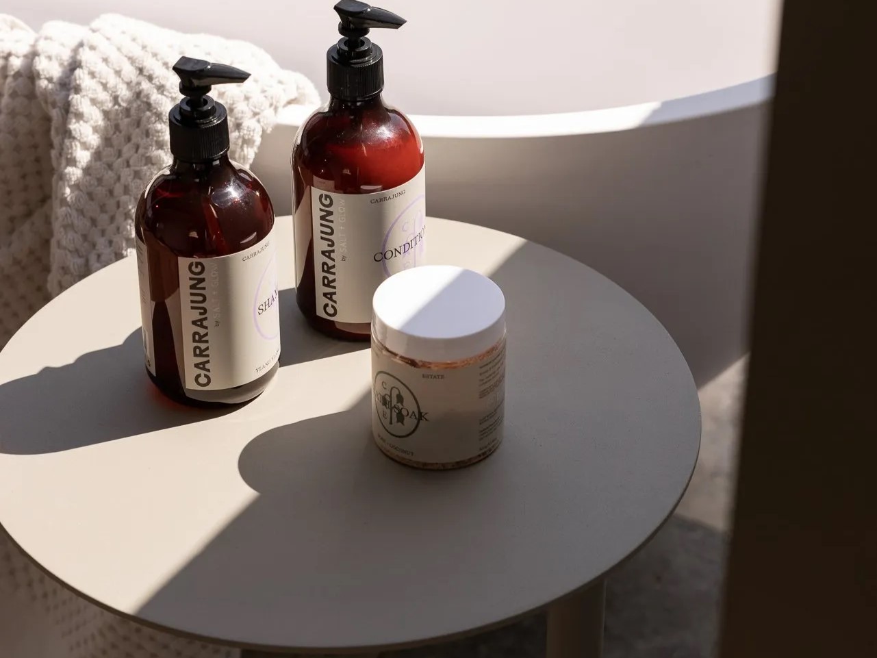 The Lodge is a charming 4-bedder is an escape space for the whole clan. Newly renovated, it offers modern comfort in a tranquil wine country setting. Relax, unwind, and savour the vineyard views. Features our Float Hole Kitchen Stools and Taran Dining Chairs.