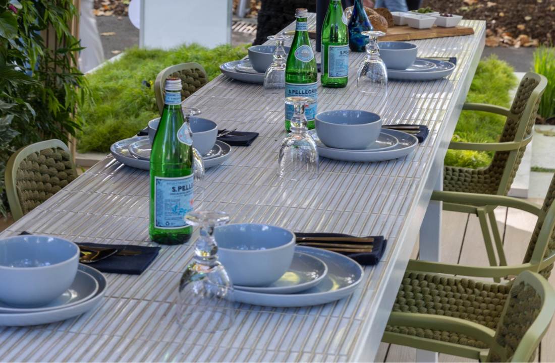 Whilst the Kea outdoor stackable Armchairs in green provided seating for friends and family to dine outdoors together.