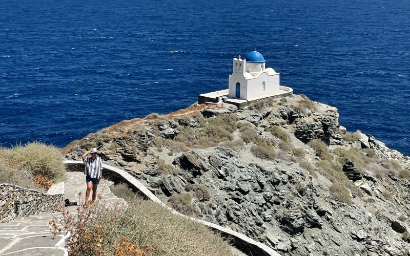 Without an airport, Sifnos is a little more difficult to get to, but so worth the effort. The Island features a mountainous interior topped with 3 beautiful whitewashed villages. The coast is fringed with crystal clear bays and sandy beaches. Whilst the unusually fertile soils bless the terraced landscape with olives, figs, almonds, and aromatic herbs. Kilometres of centuries old stone paths criss cross the island and were once the highways linking farmers, donkeys and their produce to village markets. Now these paths are revered by walking enthusiasts who come from all over the world to enjoy.