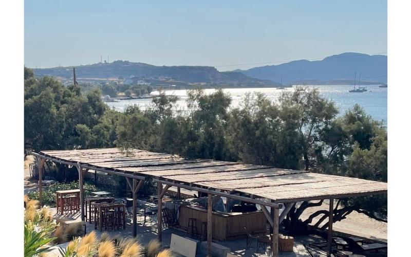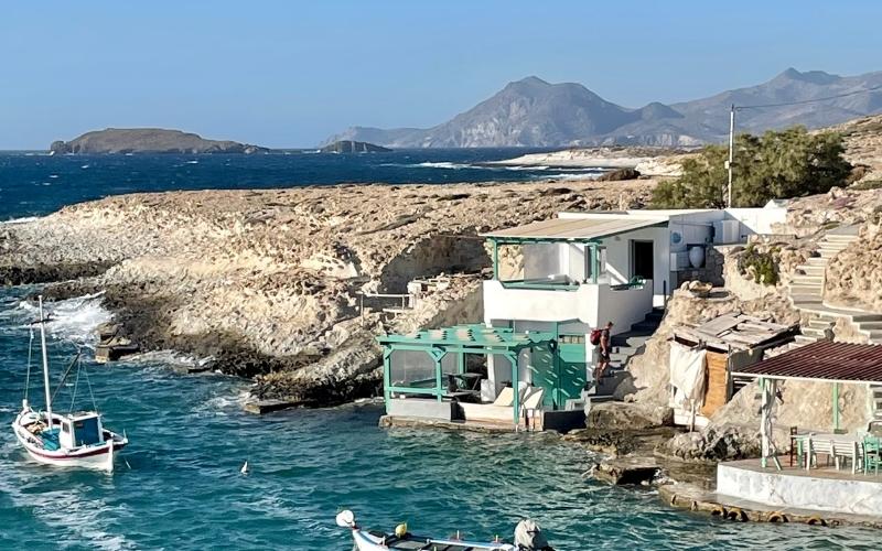 Our 2 story Syrma right on the waters edge with Kimolos in the far background
