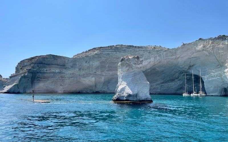 Volcanic Milos, like Santorini, arches around an ancient caldera. The dramatic coastline reflects extreme volcanic activity and the resultant caves, moonscapes, beaches and surreal rock formations attract tourists from far and wide. In addition, Milos harbours gorgeous and centuries old coastal and hilltop villages many of which are home to tavernas that have been run by generations of the same families.
