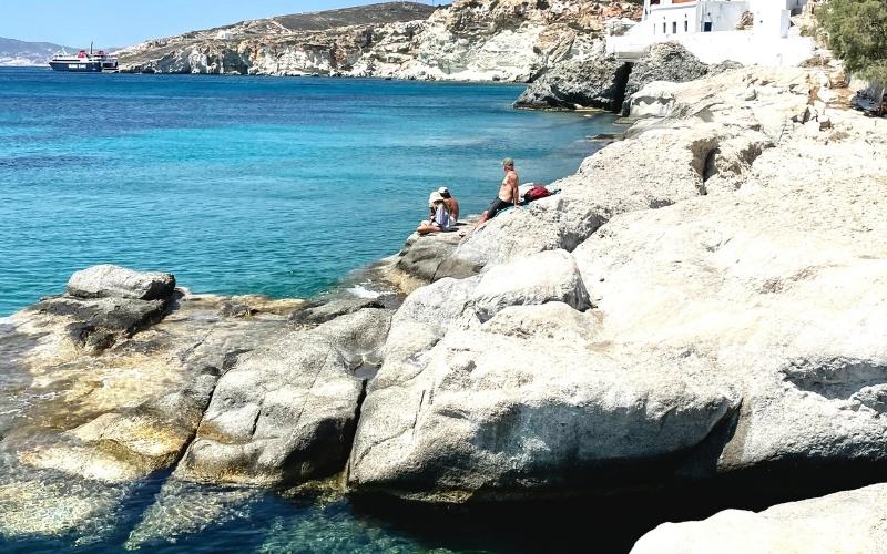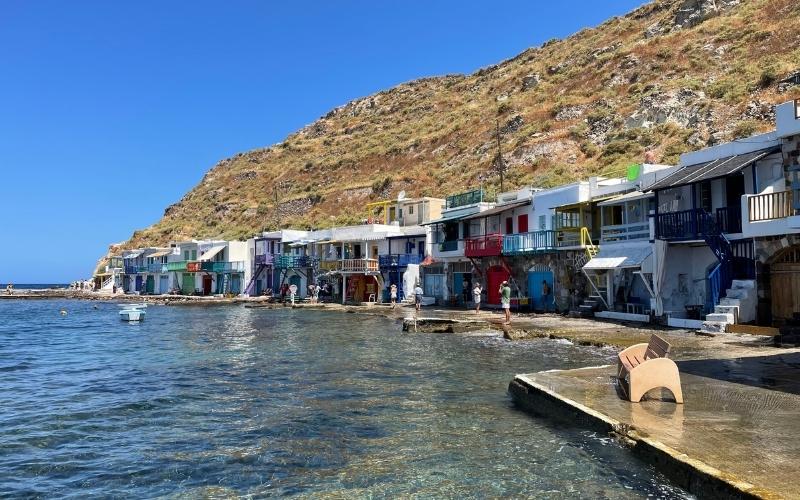 The quiet port town of Pollonia is a picutresque fishing village on the North East tip of Milos and is an equisite location to watch the sunset and enjoy traditonal greek dinners by the sea. It is also has a small ferry providing trips to from Kimolos