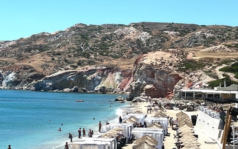 Volcanic Beach scape at Milos, complete with thermally heated springs and sulphurous cliffs
