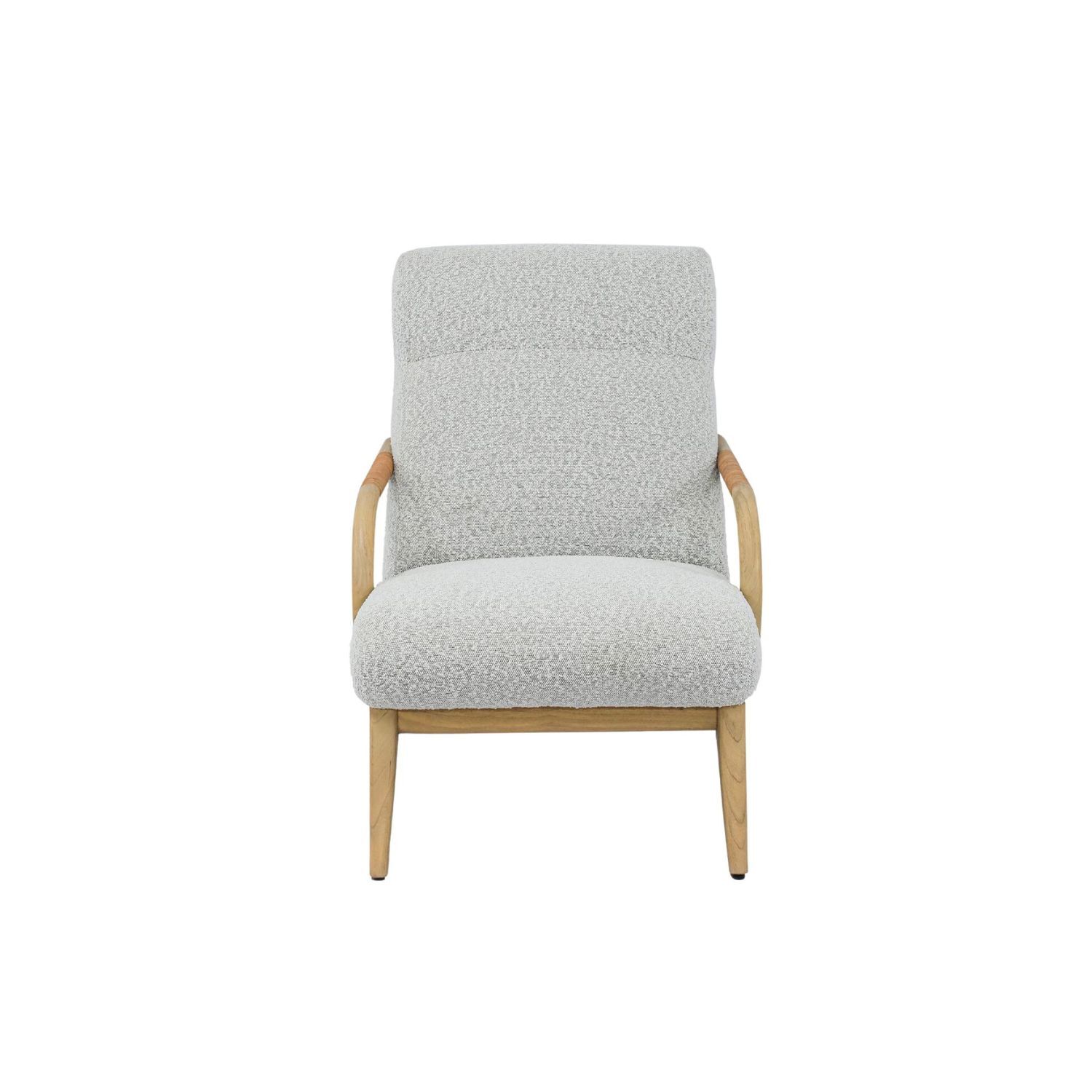 The Caja Lounge Chair in a pearl boucle showcases a harmonious blend of comfort and sophistication. Its timber frame provides a warm and inviting touch, while the leather detailing on the arms adds a subtle hint of luxury to this timeless piece.