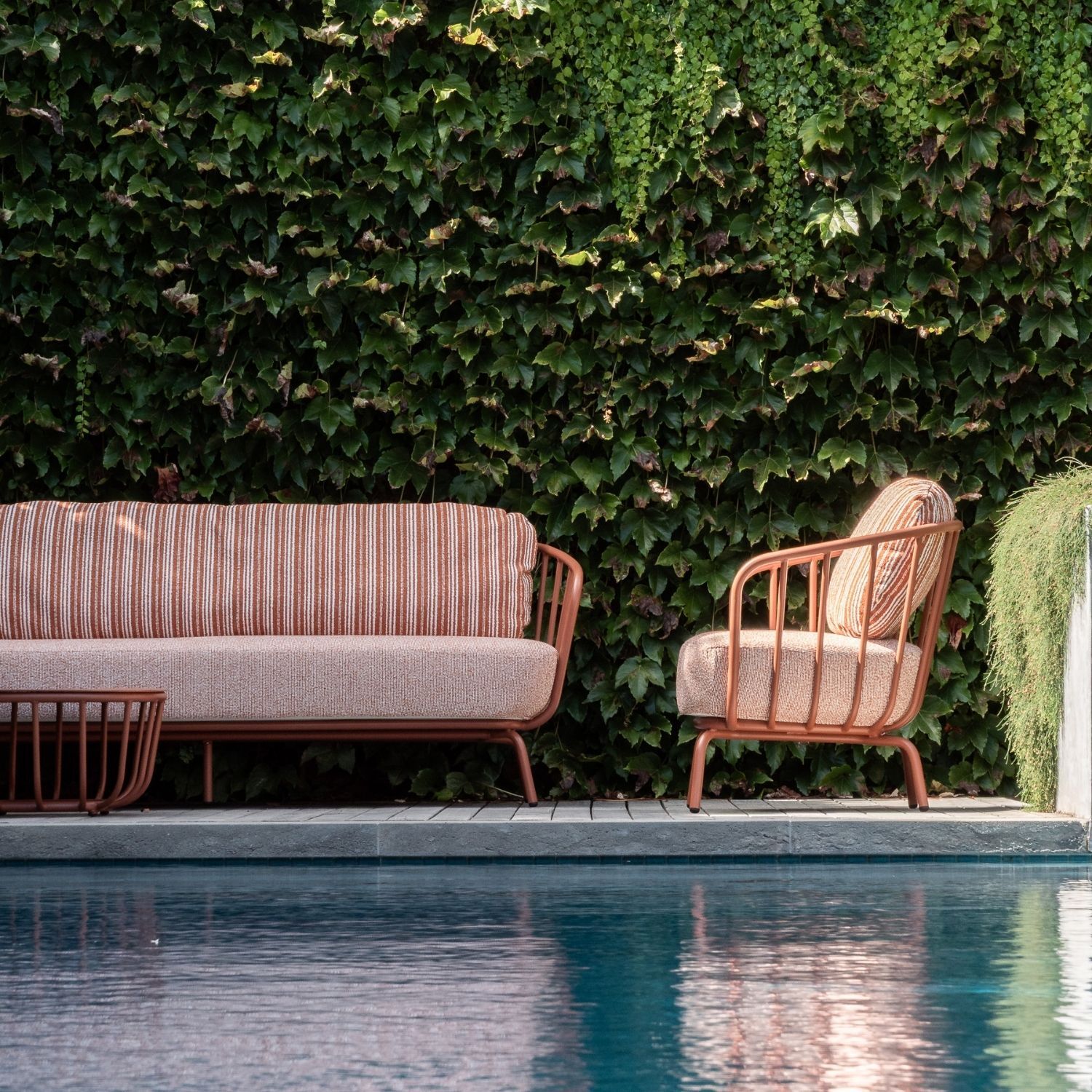 Capri Coffee table adds a sense of playfulness to any outdoor setting. The open, sculptural base brings a layer of visual depth and craft to any outdoor setting, while the fully powder-coated aluminium construction ensures the Capri performs as well as it looks through every season.