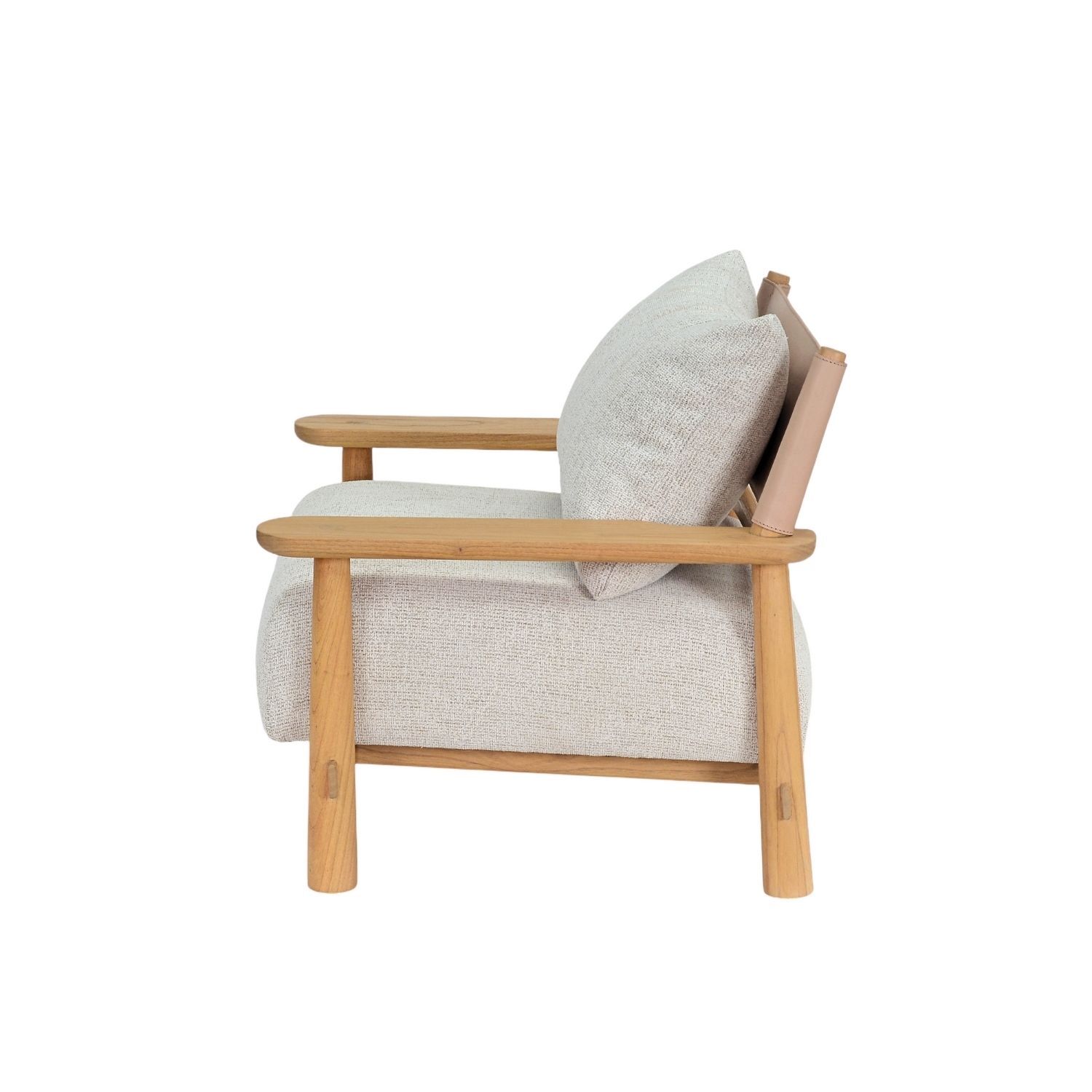 Designed with comfort and style in mind, the Coju Lounge Chair features a generously upholstered seat and backrest in a textured fabric, offering a cosy and inviting feel.