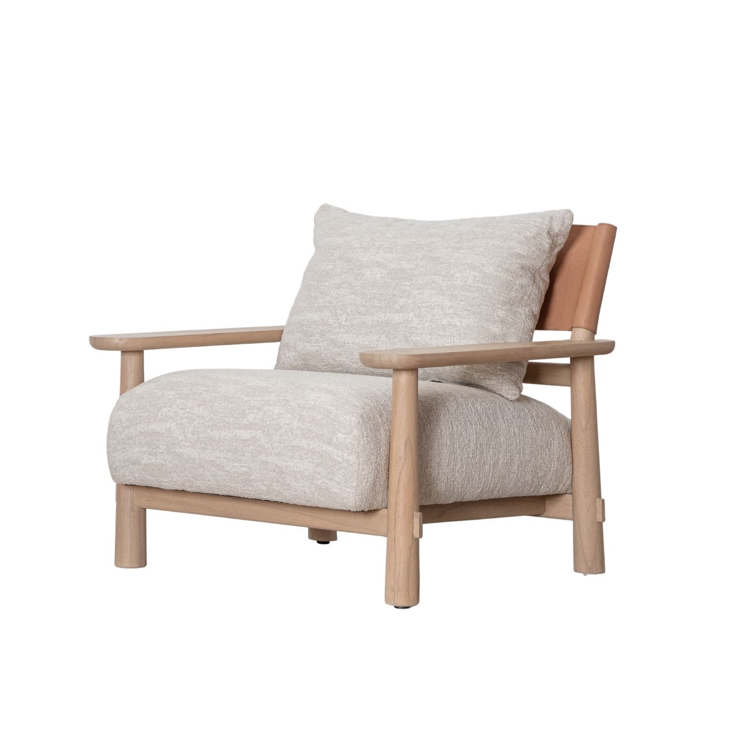 Designed with comfort and style in mind, the Cojo Lounge Chair features a generously upholstered seat and backrest in a textured fabric, offering a cosy and inviting feel.