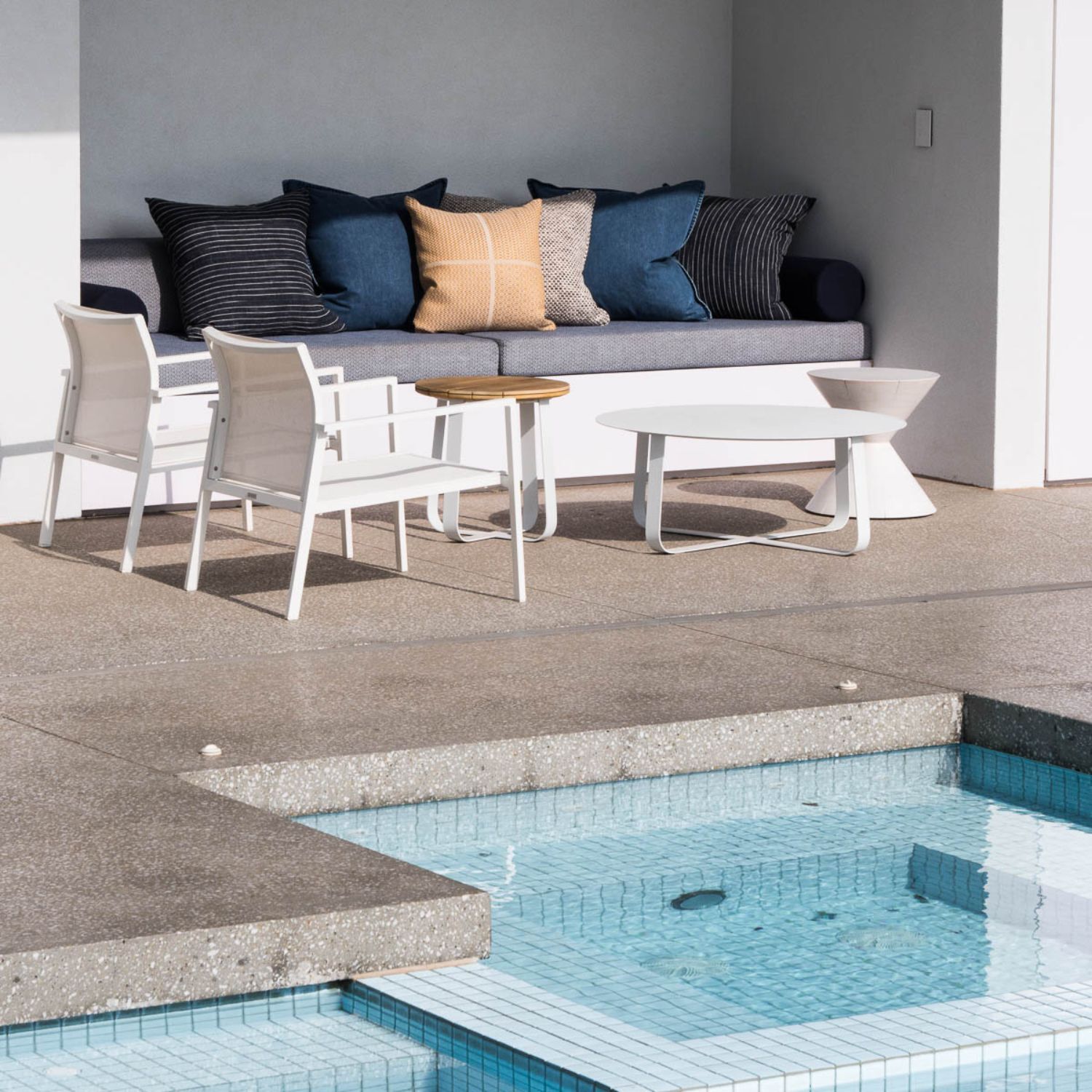 The Dena Coffee Table brings sculptural elegance to your outdoor space with its distinctive design and modern simplicity. Featuring a round white powdercoated aluminium top and a uniquely shaped base, it adds visual interest while effortlessly complementing a range of outdoor styles. Supplied fully assembled, it's ready to enhance your alfresco setting with style and ease.