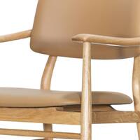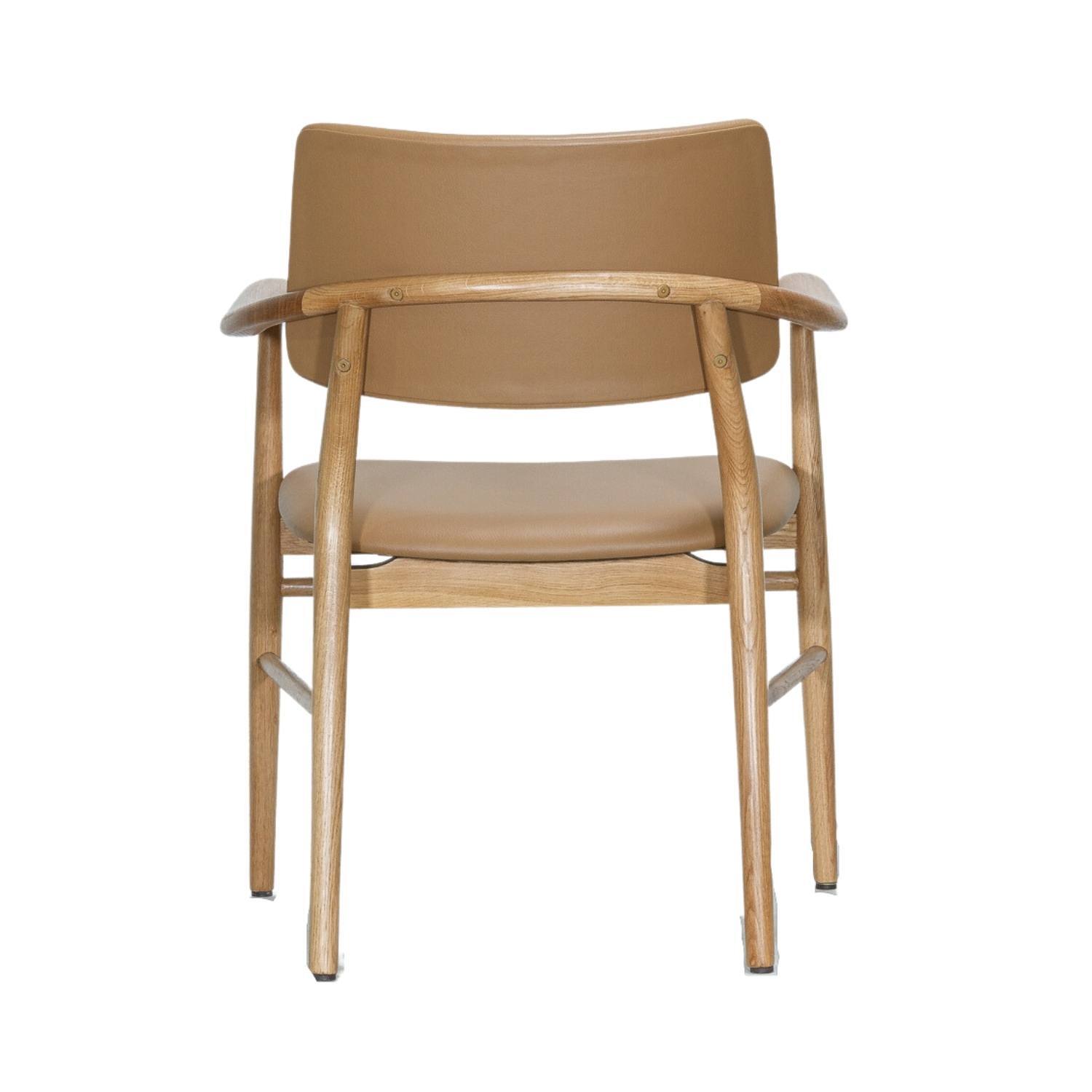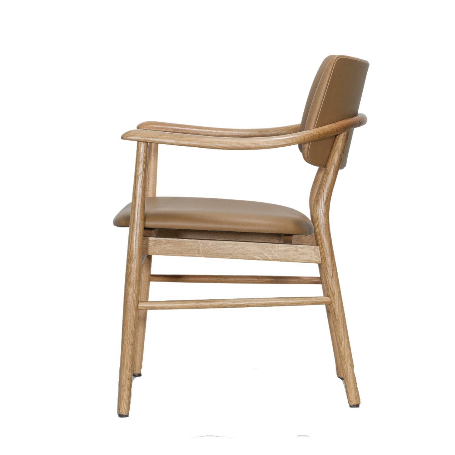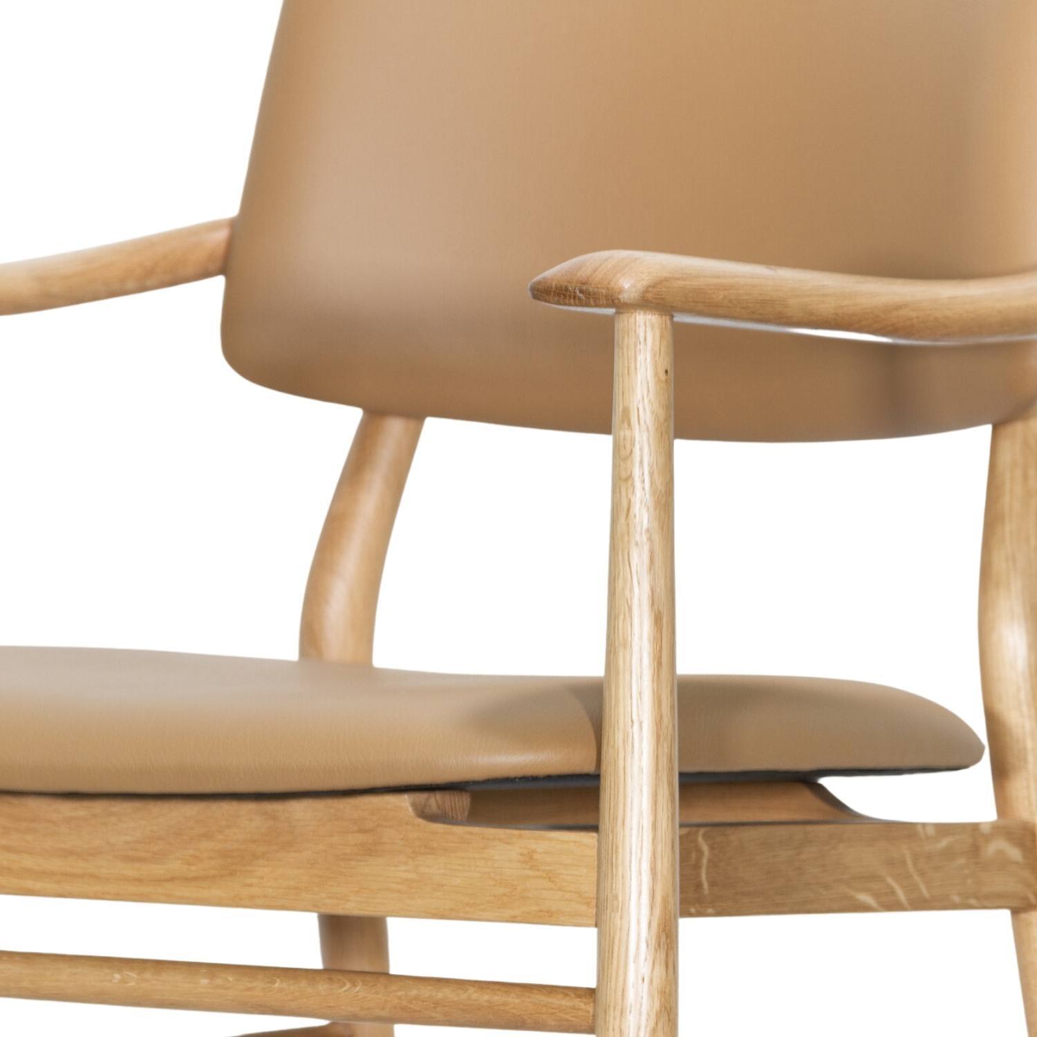 Crafted from premium Oak and adorned with full upholstery on the seat and backrest, the Evander radiates an air of sophistication that effortlessly complements tactile timbers. Its slender frame adds a touch of elegance, while customisation options in fabrics, vegan leathers, and timber stains allow you to tailor it to your unique style.