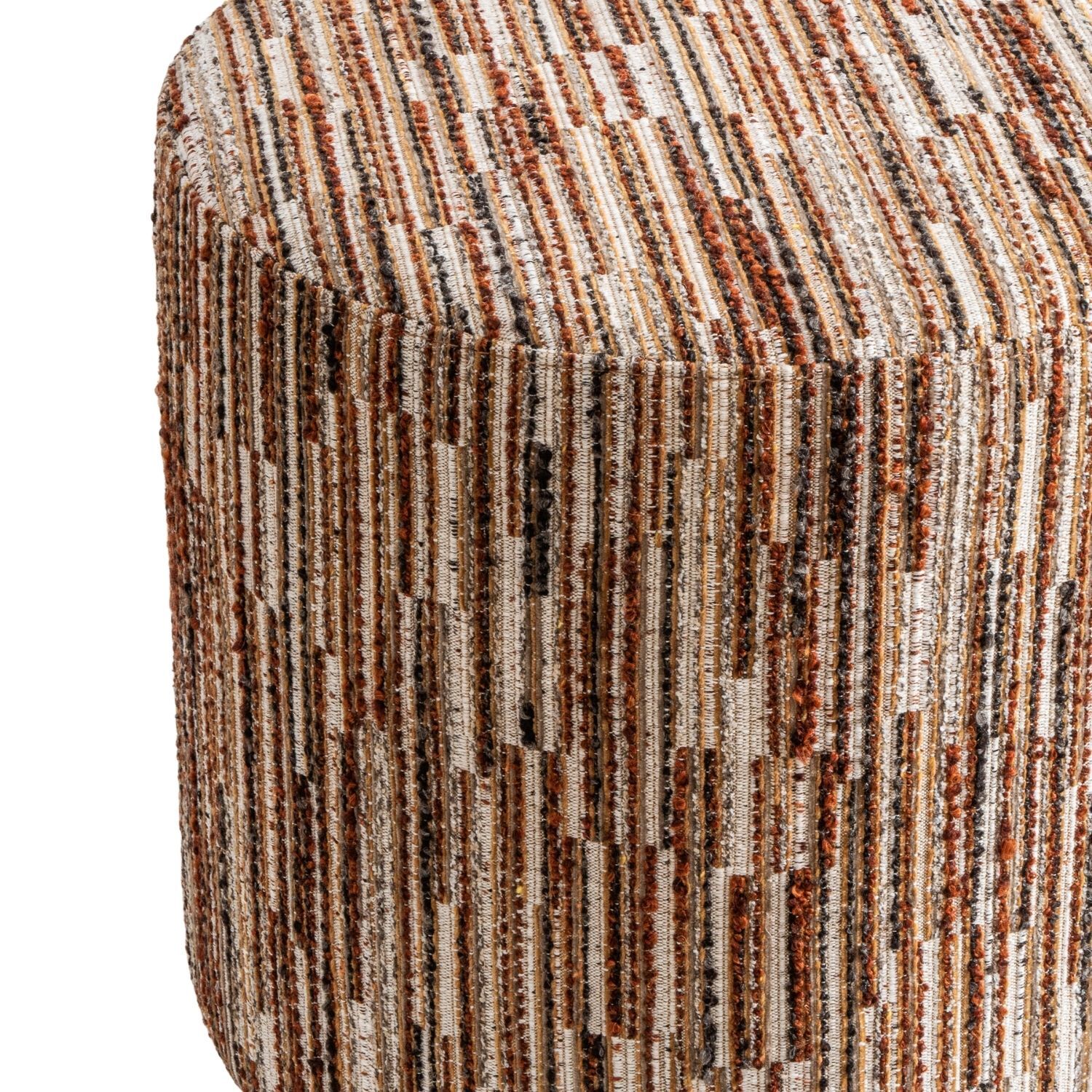 Round, textural and a little playful. The Jace Ottoman comes embraces a boldly woven, multicolour fabric and smooth contrast base that makes it so easy to love.  Equally at home as extra seating, a low stool, or a standalone accent piece, it brings texture and character to any room.