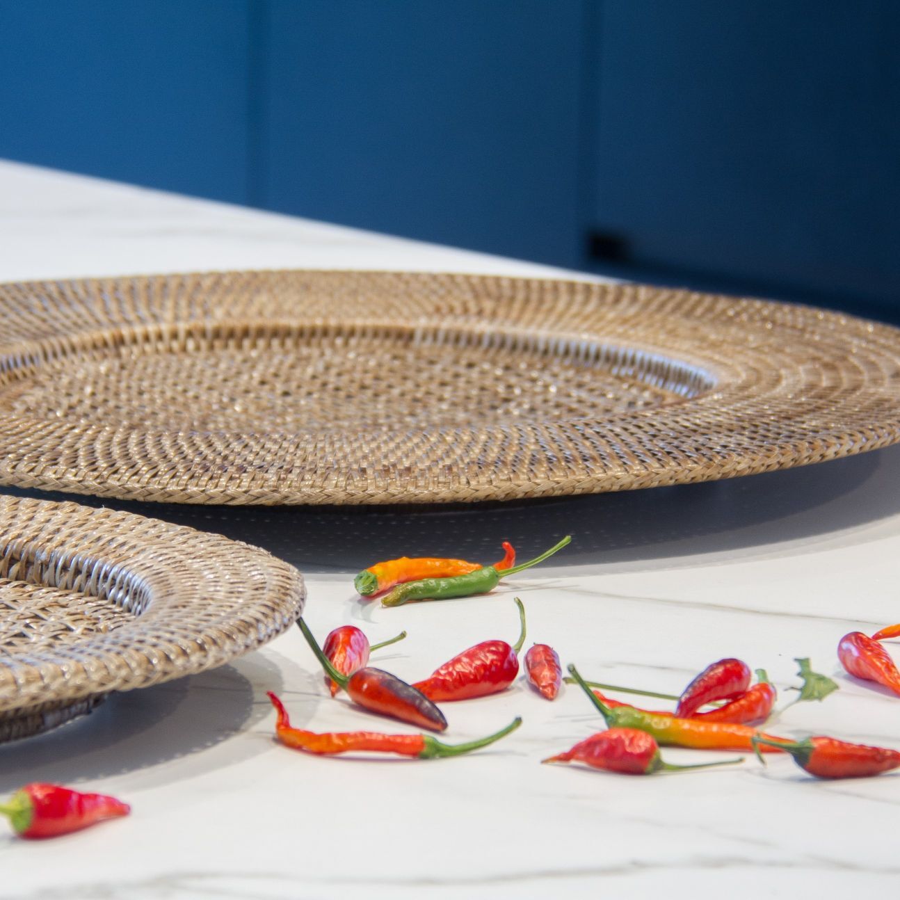 A decorative base plate to place dinnerware for formal or informal occasions.  Also ideal for protecting kitchen surfaces from heat damage.