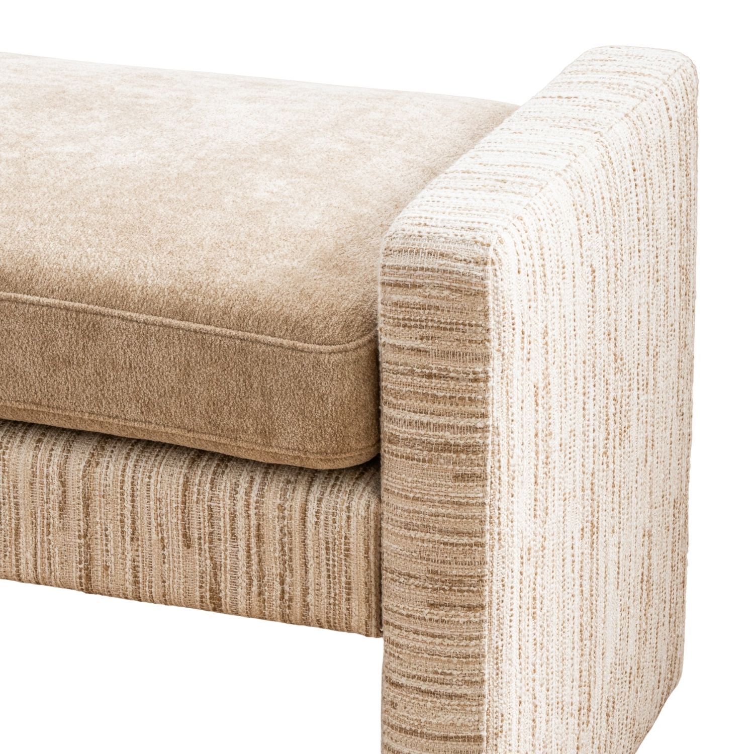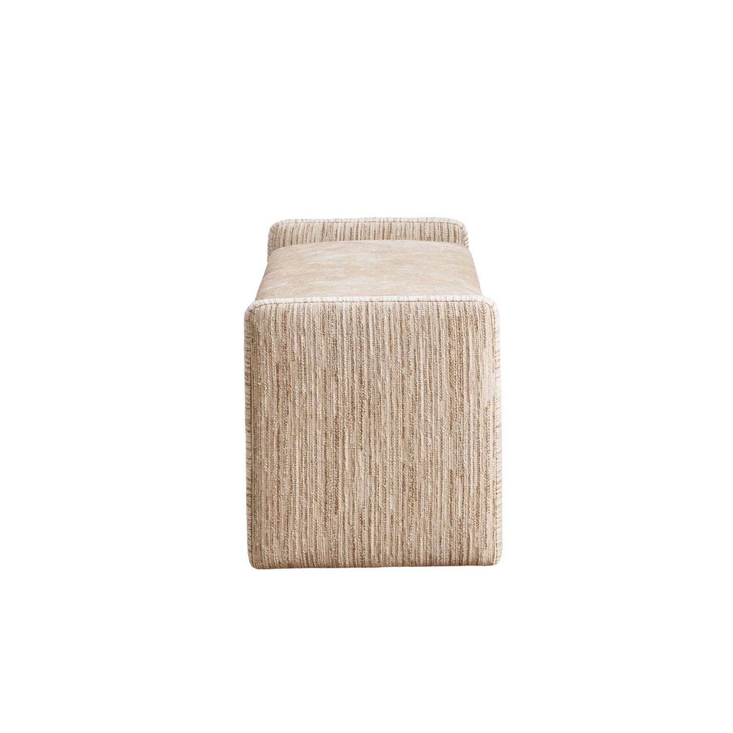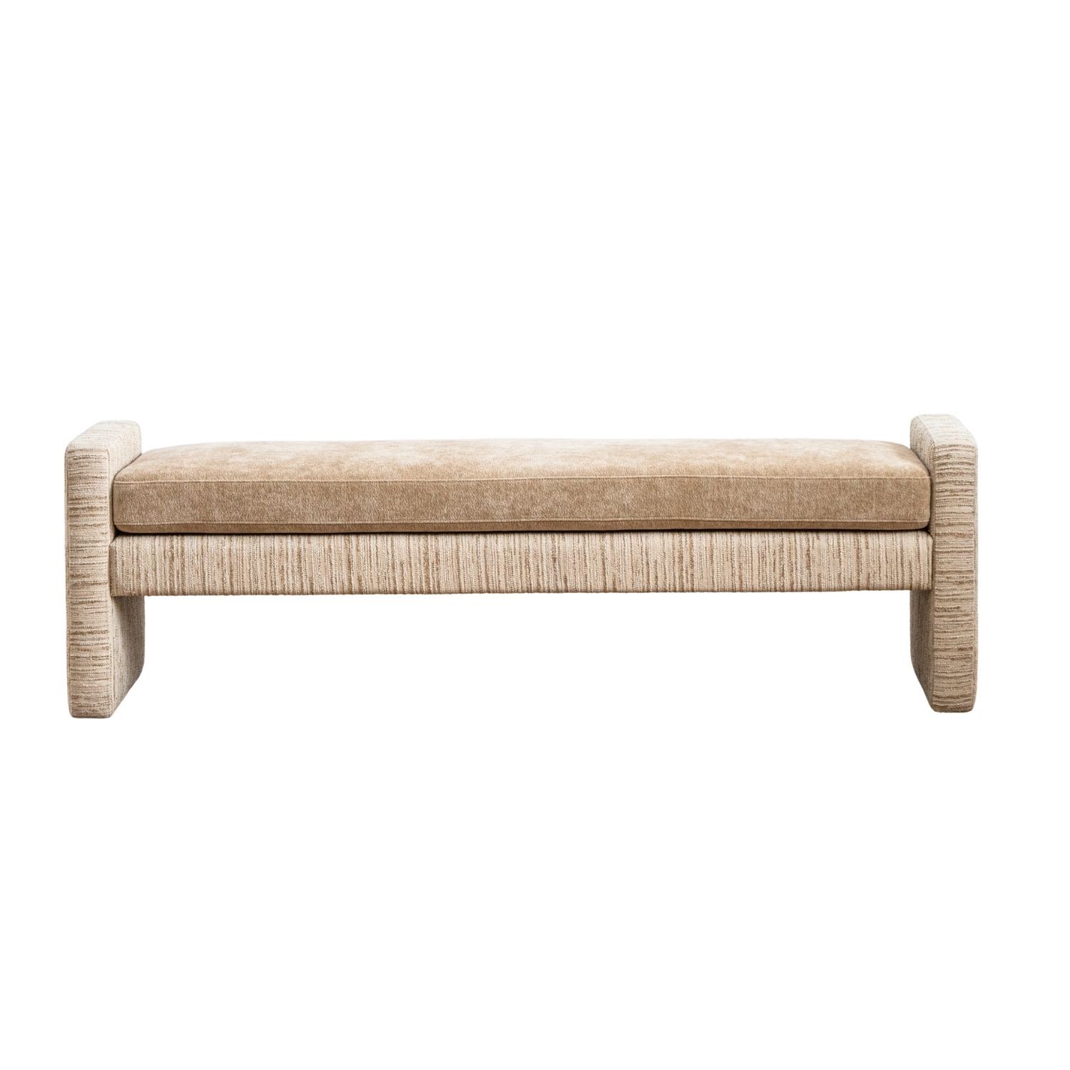 The Harris Bench is built on contrast,  a textured, woven exterior meets a smooth, plush seat that invites you to sit. That tension between textured and soft, structure and ease, is what gives it presence in a room. Place it at the foot of a bed, in an entrance or beside a sofa.