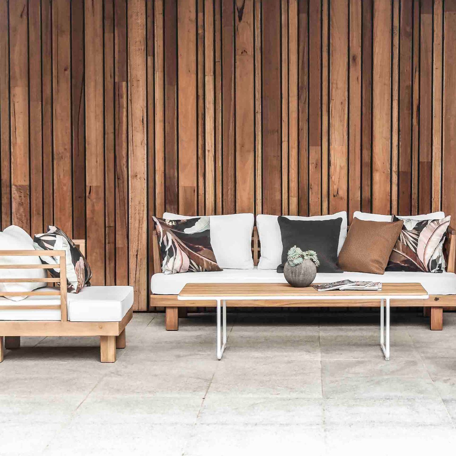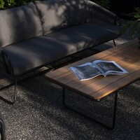 Enhance your outdoor ensemble with the Ibiza Rectangular Coffee Table. A Black frame, paired with an Eco Teak slatted top. Its minimalist design effortlessly complements any outdoor space. Complete the set with the option of a Round Coffee Table as well.