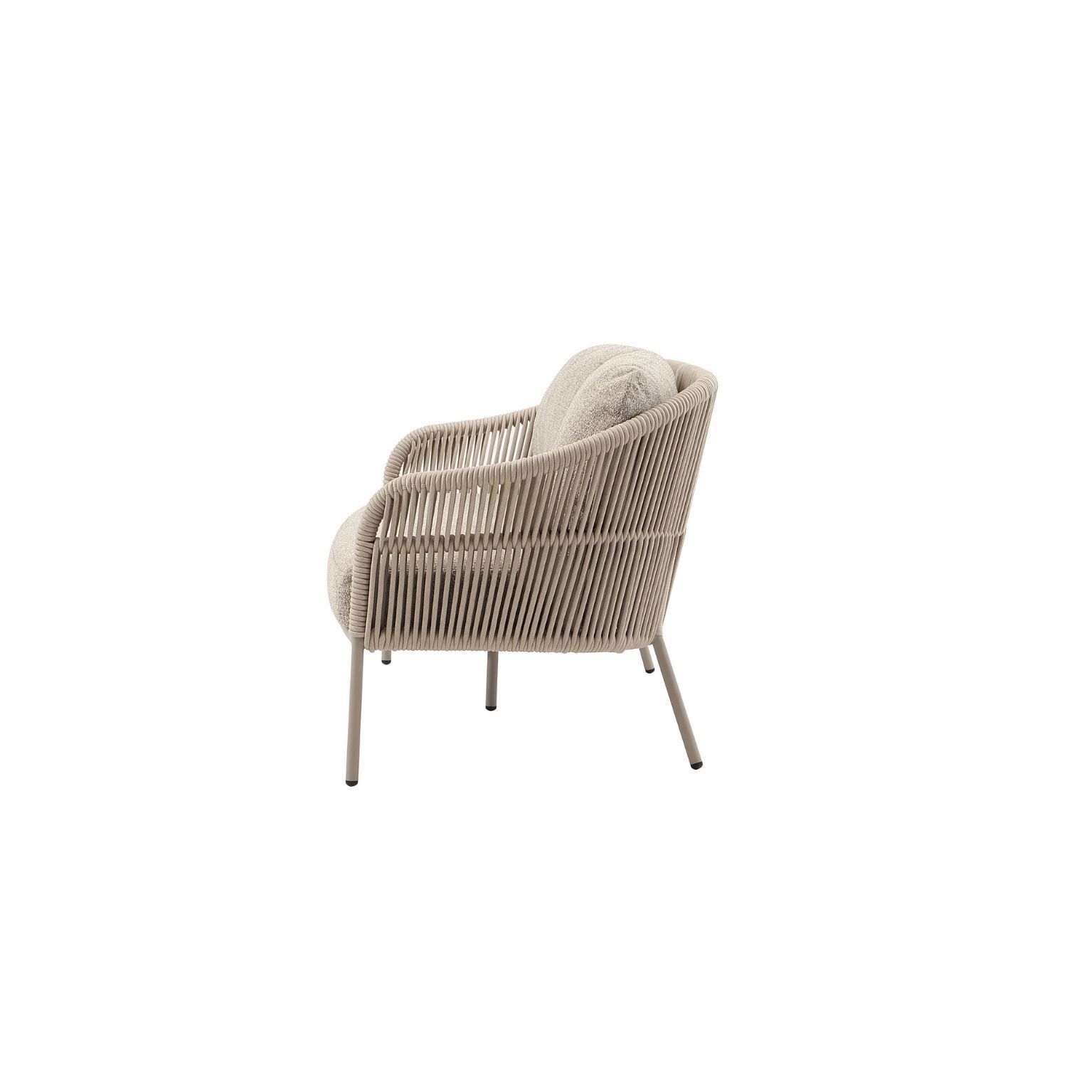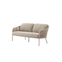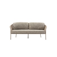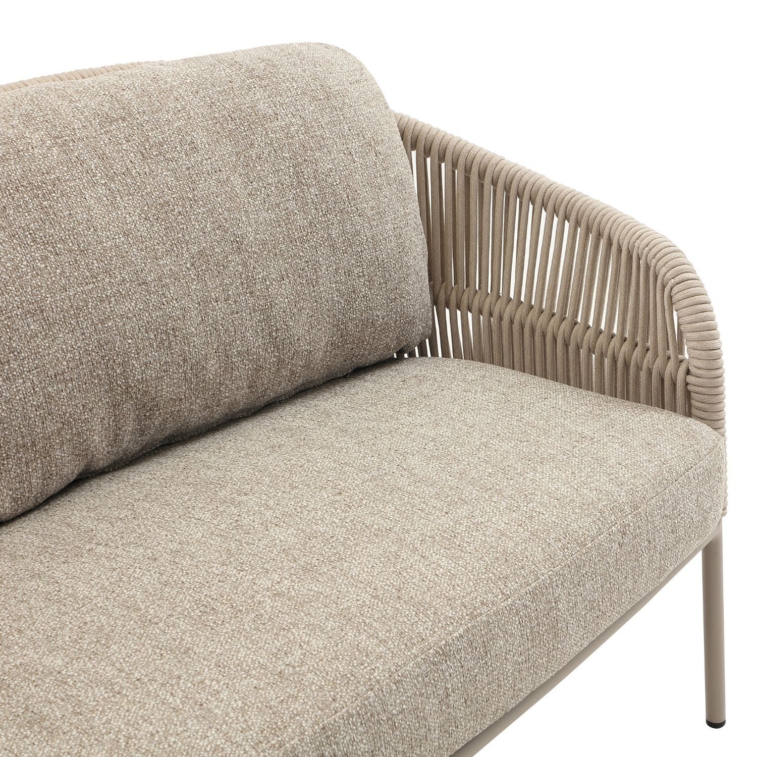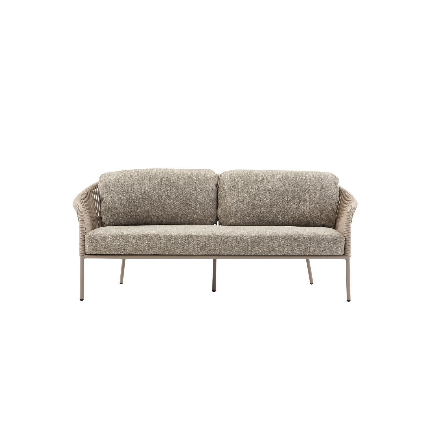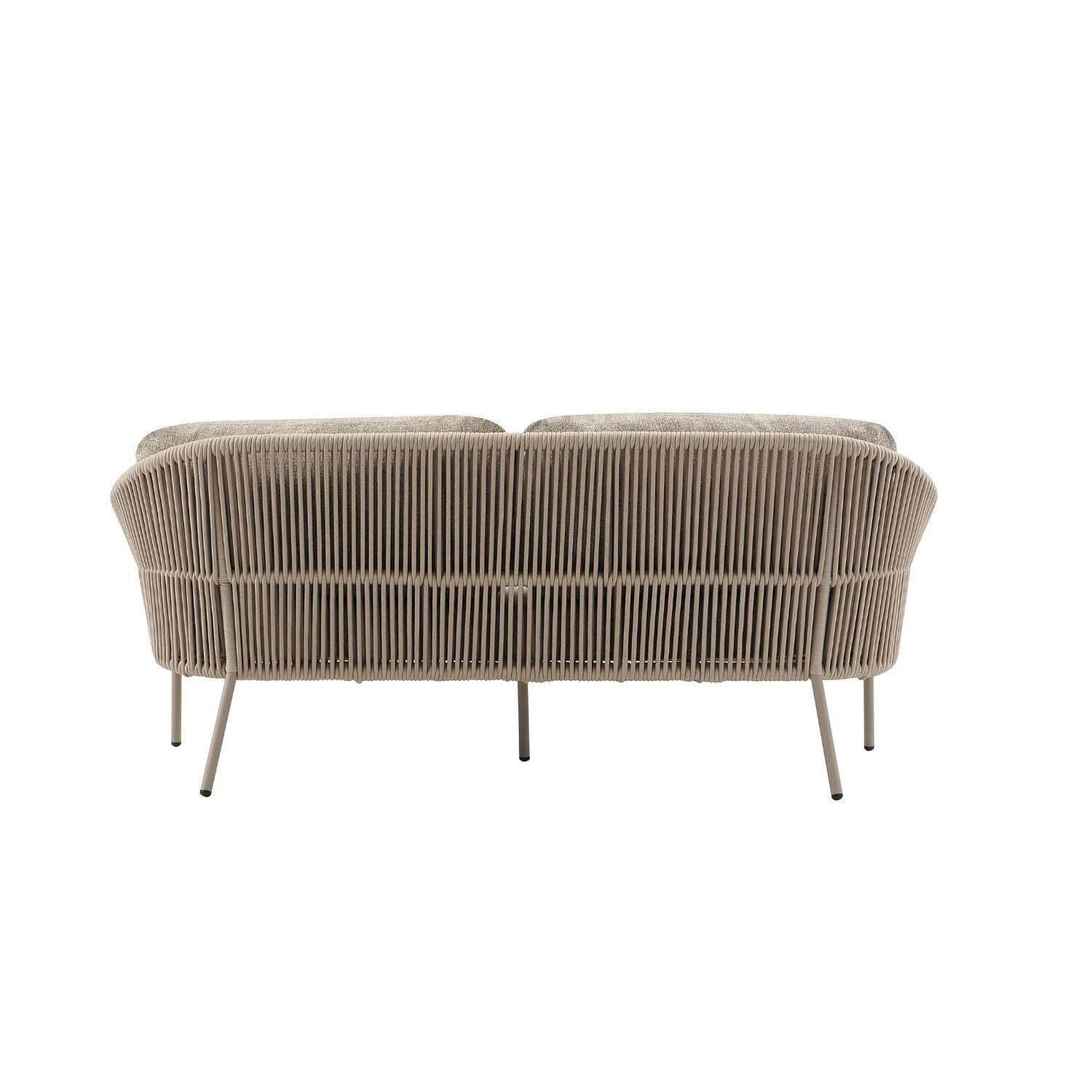 Settle into the Isola Sofa and let the afternoon slow down around you. The generously proportioned two-seat form is wrapped in the same tightly woven rope detailing that defines the collection, its open, vertical lines creating a structure that feels light and airy without sacrificing support or comfort. The softly contoured arms sweep outward and downward in a gentle curve, cradling the sides of the body with a natural, unhurried ease. Deep seat and back cushions in a weather-resistant textured outdoor fabric hold you in a way that makes conversation flow and time disappear.