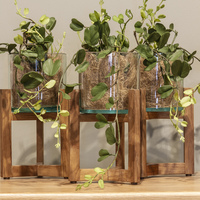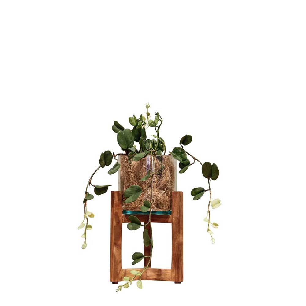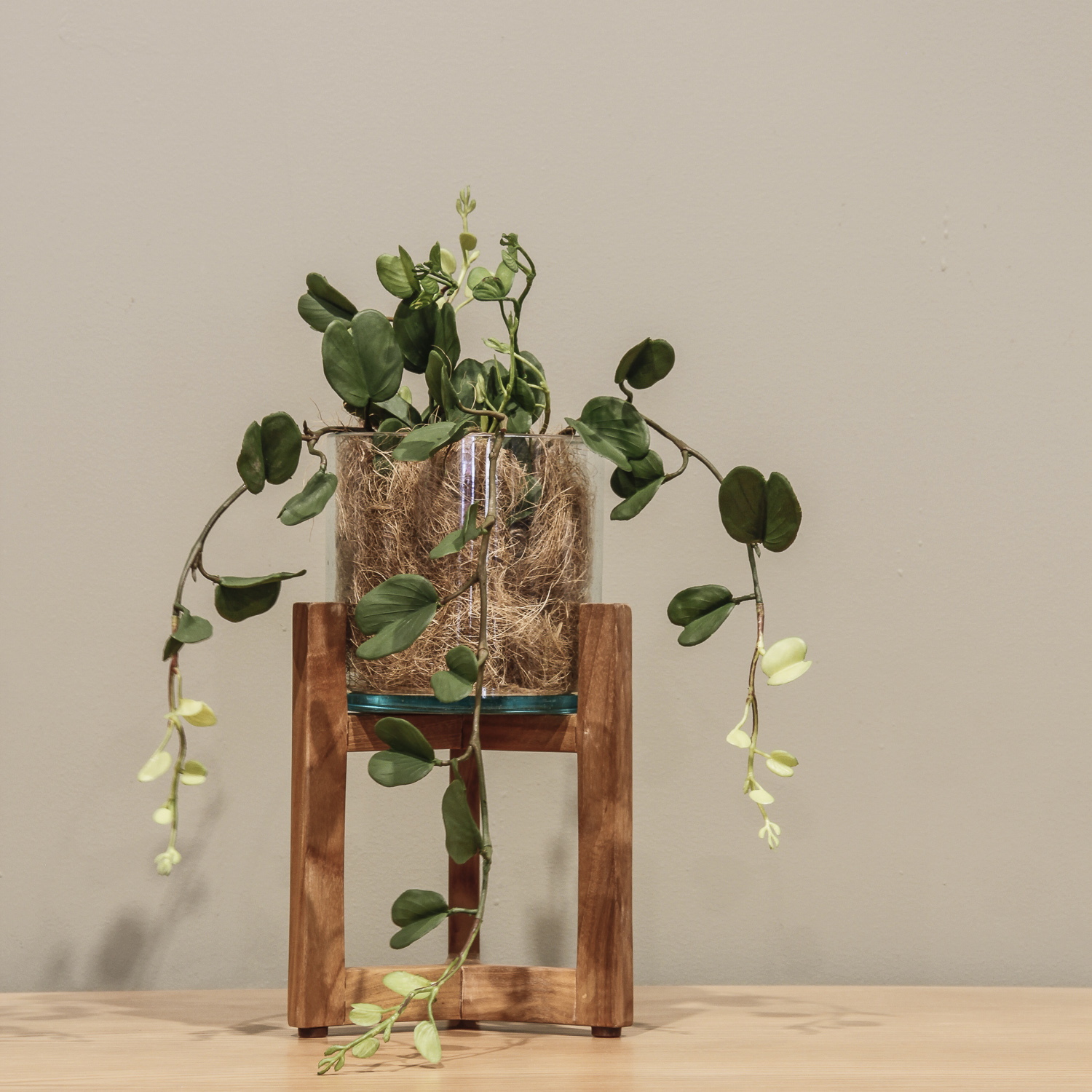 The Kandy Vase features a solid teak base paired with a removable glass vessel, making it suitable as either a vase or candle holder. Ideal for indoor or outdoor settings, it can be styled with pillar candles, fresh blooms or water and floating botanicals.