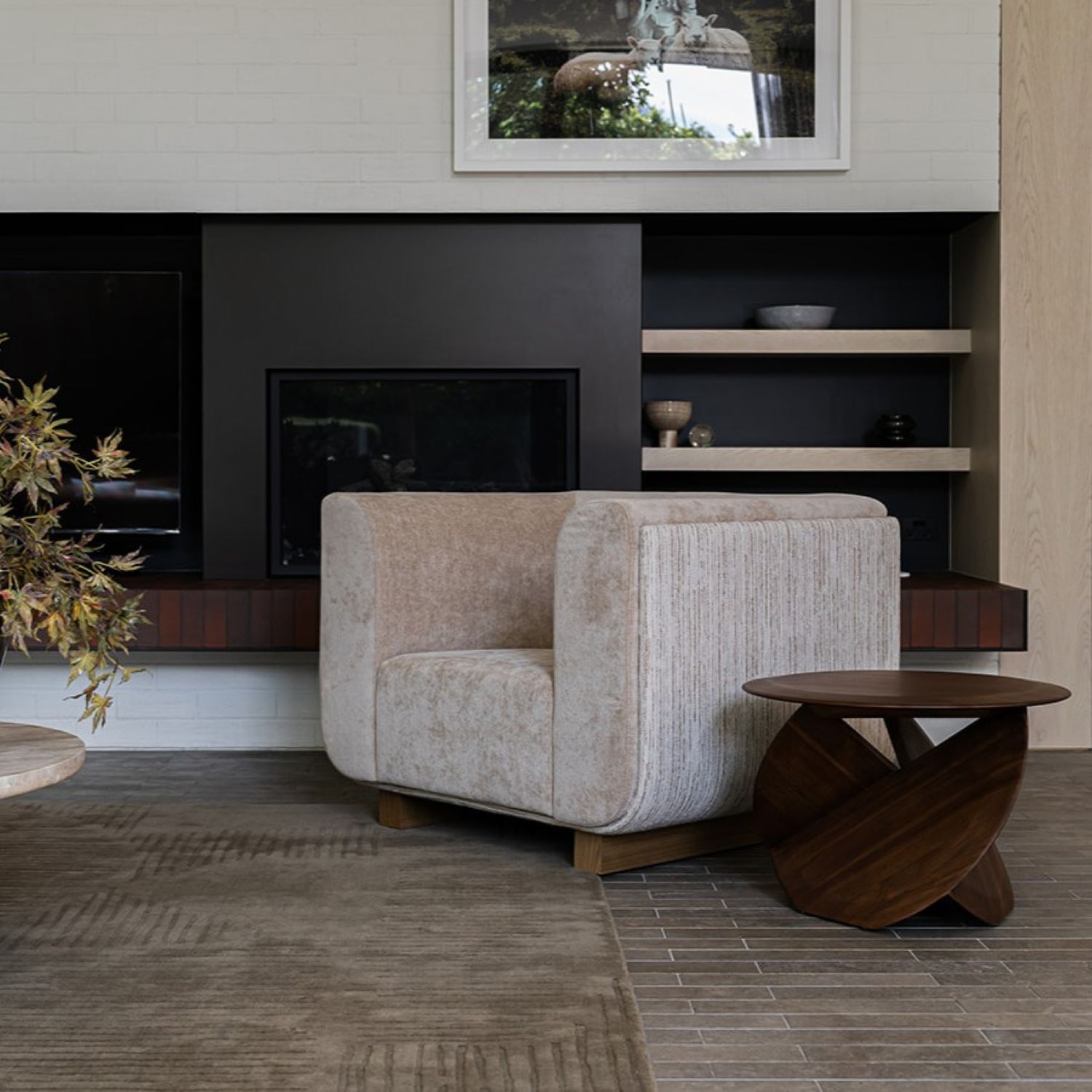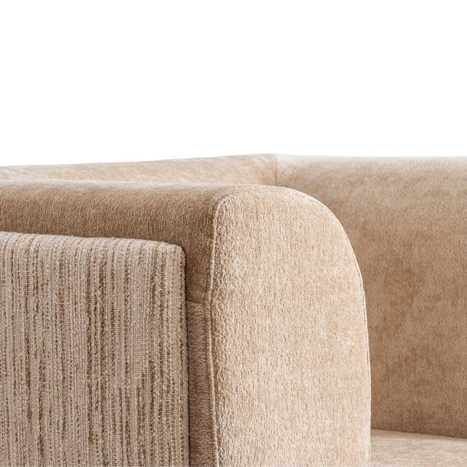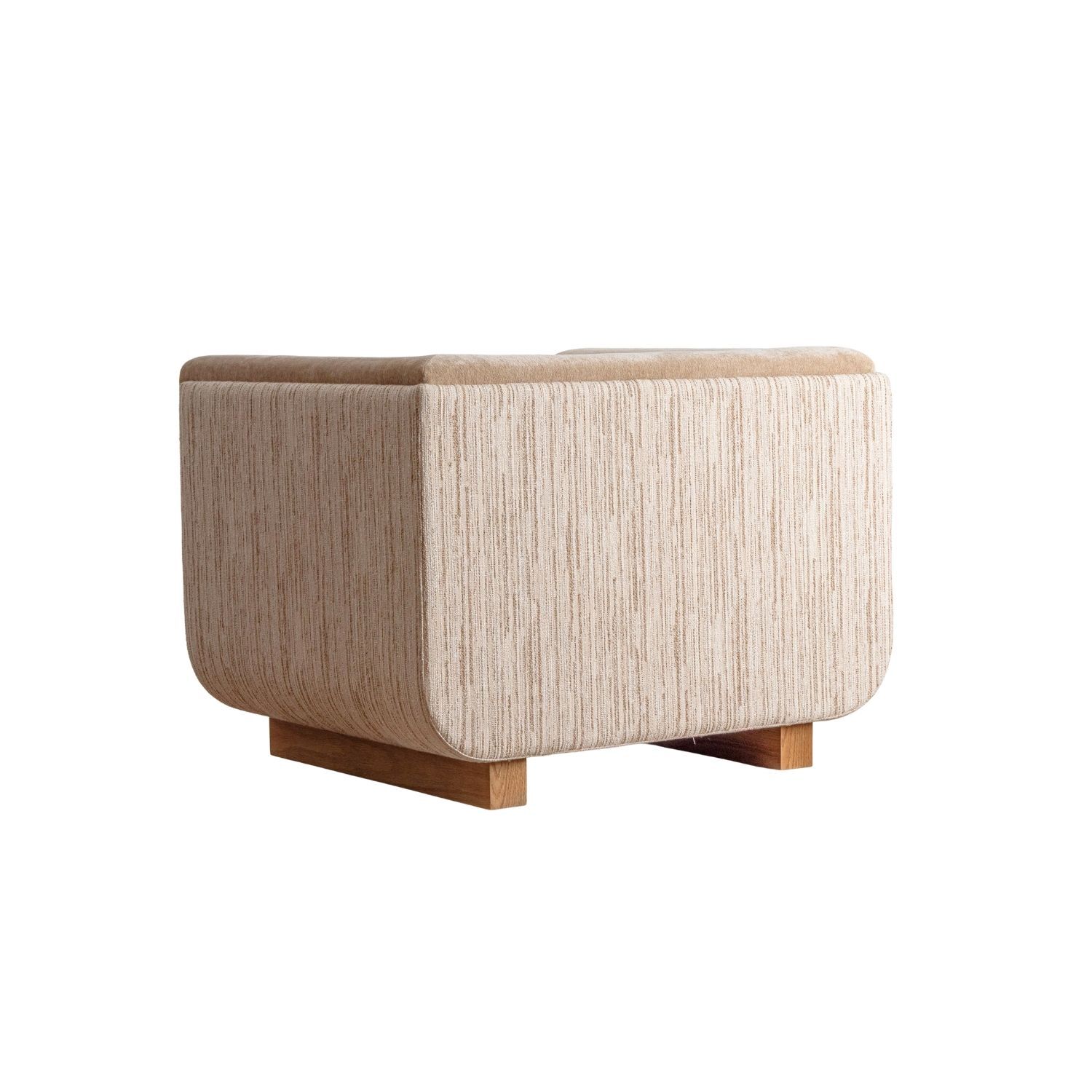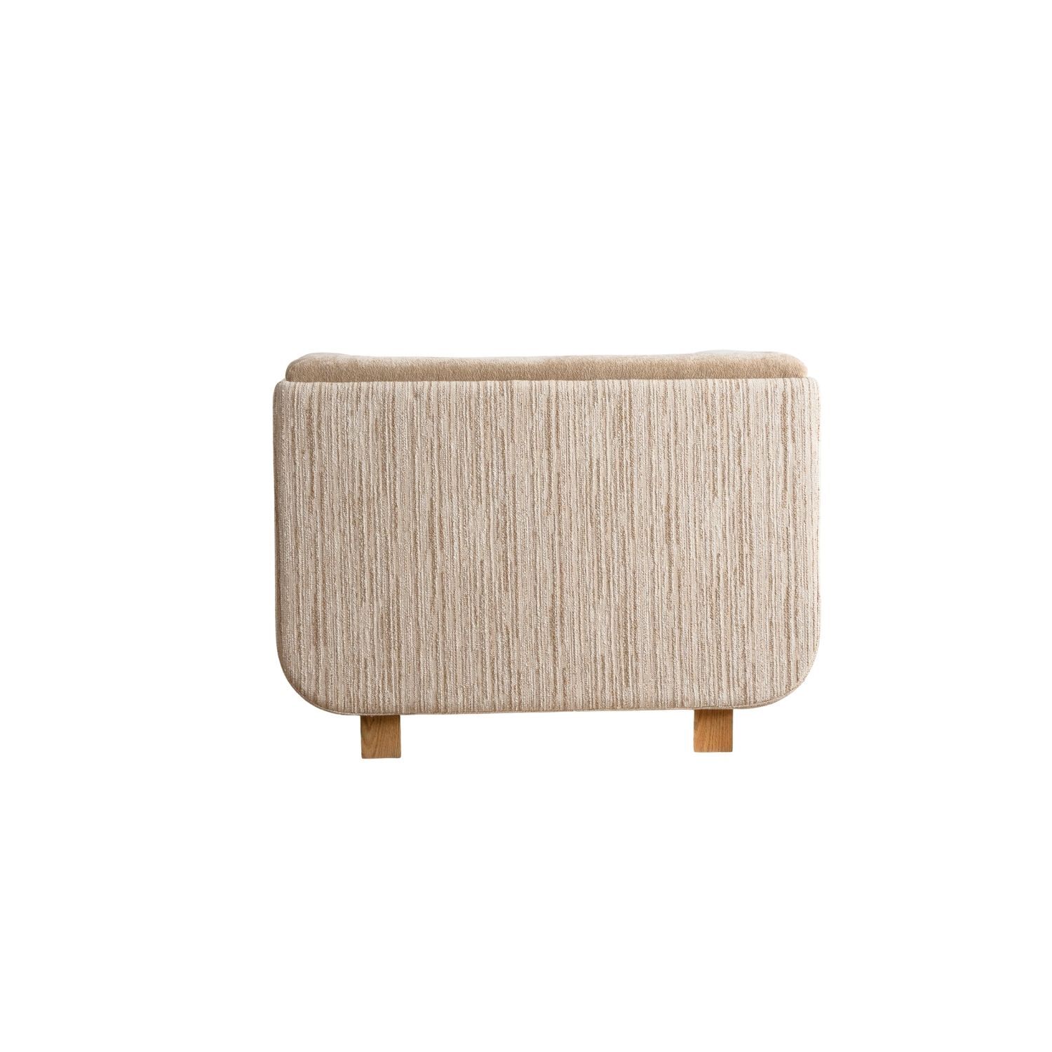 The Keaton Lounge Chair commands the room with a confident, masculine presence. The oversized silhouette is defined by layered upholstery panelling a richly textured exterior shell wrapping the outside of the chair, while the inner seat is finished in a softer, more tactile fabric that welcomes you the moment you settle in. The contrast between the two creates a depth of detail that speaks to a thoughtful approach to design. Solid timber feet ground the design whilst at the same time lifting the generous form.