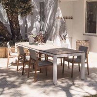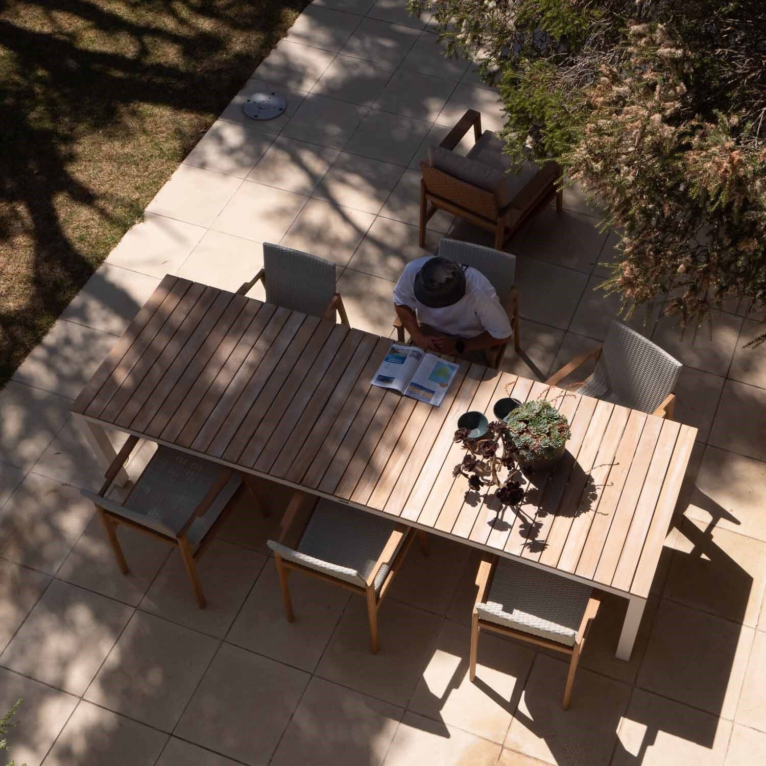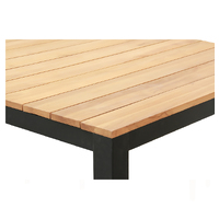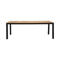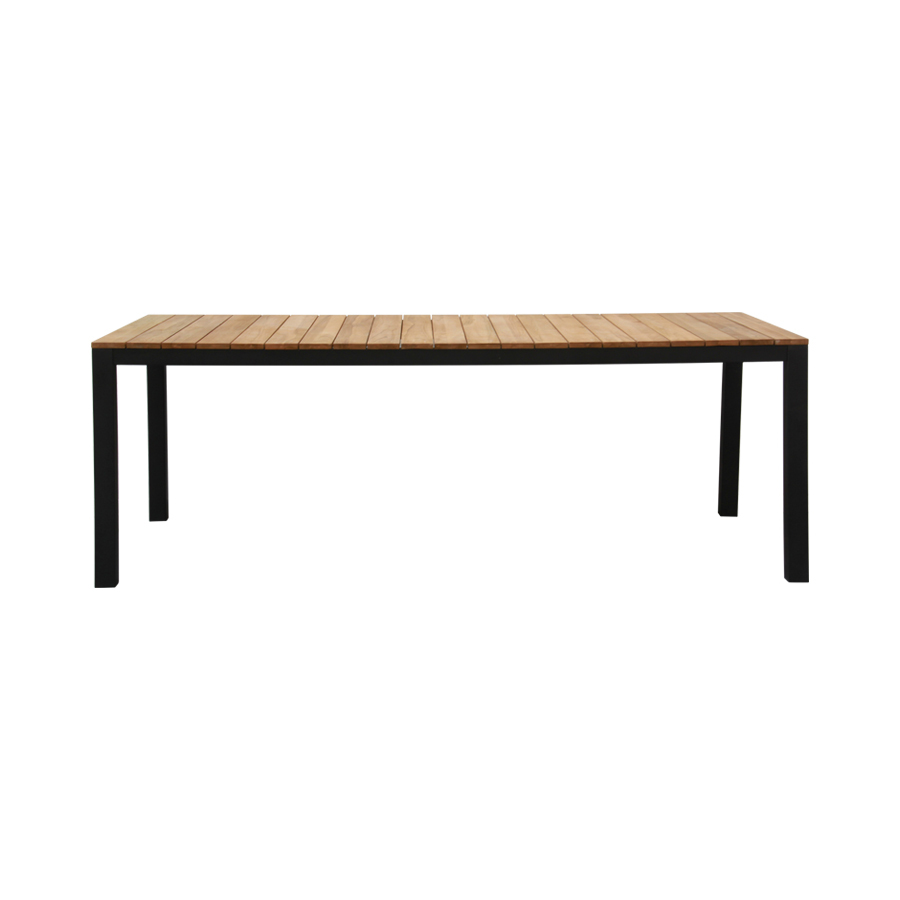 The Lido Dining Table, a timeless addition to your space. Featuring a powdercoated aluminum frame and a slatted teak top, combining durability with elegance. The underframe height of 67cm ensures comfort during meals. Natural top with black legs adds a touch of sophistication.