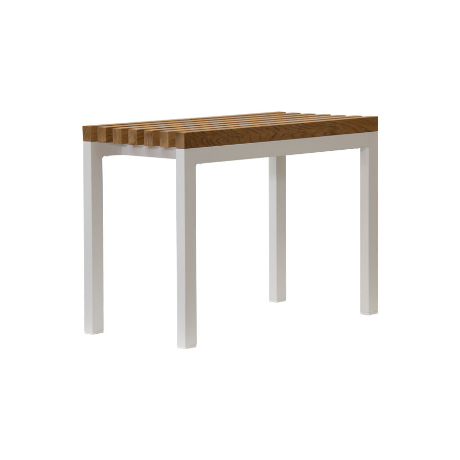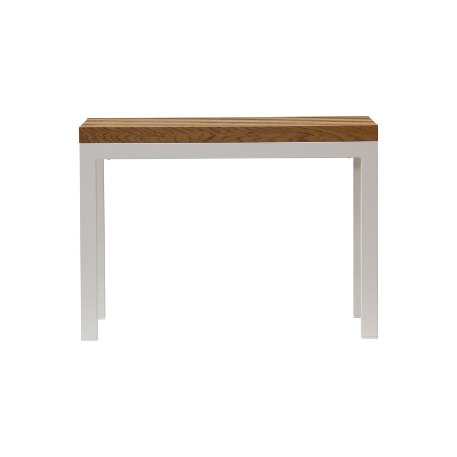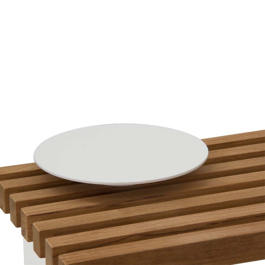 Colour: Natural teak top / White powdercoated legs / White powdercoated plate