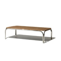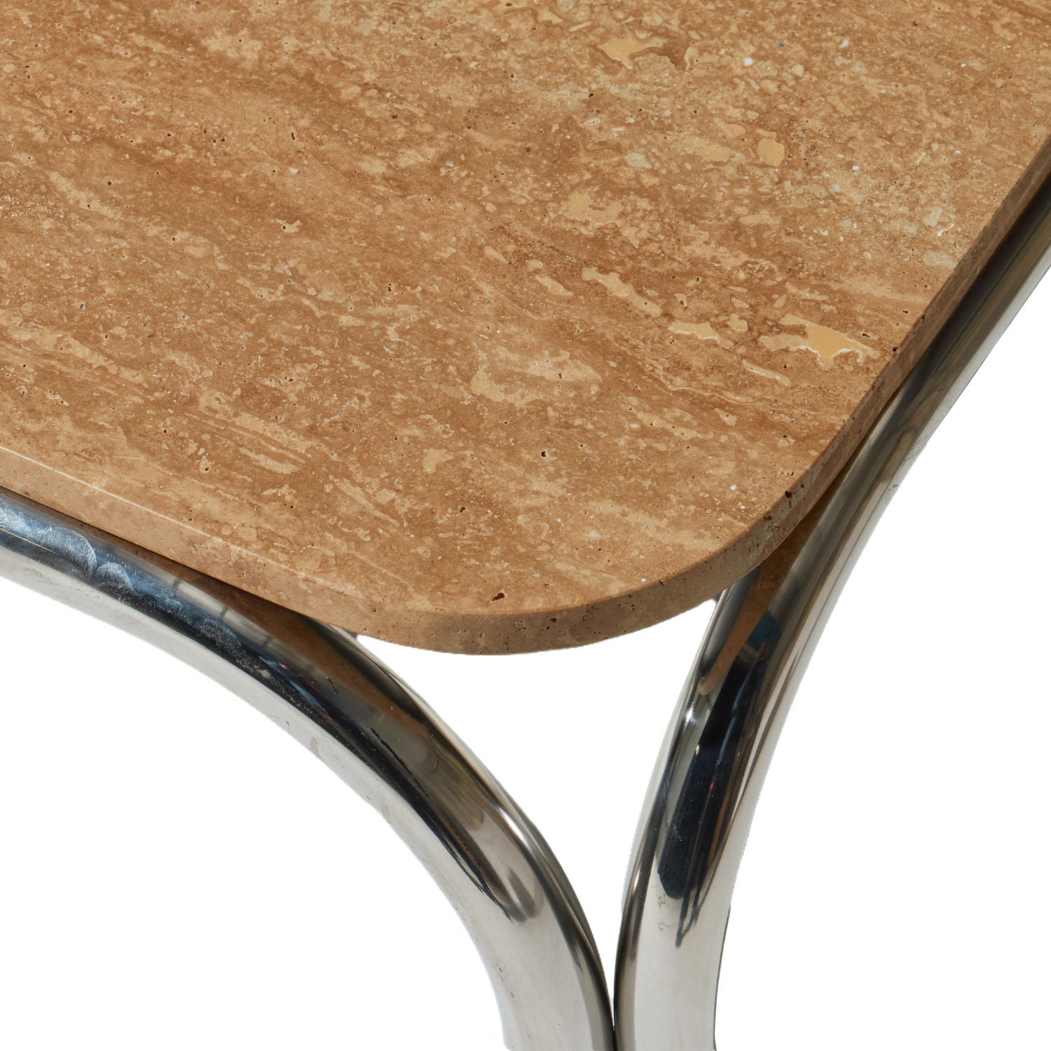 The Malibu Coffee Table is where retro nostalgia meets modern sophistication. Designed with a sleek, polished stainless steel frame and crowned with a luxurious travertine top, this piece strikes the perfect balance between edge and elegance. It's rectangular form is softened by gentle, curved edges, creating a refined silhouette that tempers the contrast between stone and high-shine metal. Whether styled in a chic urban loft, an upscale commercial setting, or a thoughtfully curated home, its fusion of organic texture and architectural precision adds undeniable presence, a sculptural moment, designed for those who seek character, craftsmanship, and quiet luxury in their interiors.