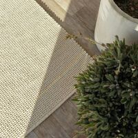 Care and maintenance:  Vacuum and sweep both rug and underneath regularly. Hose and hang out to dry