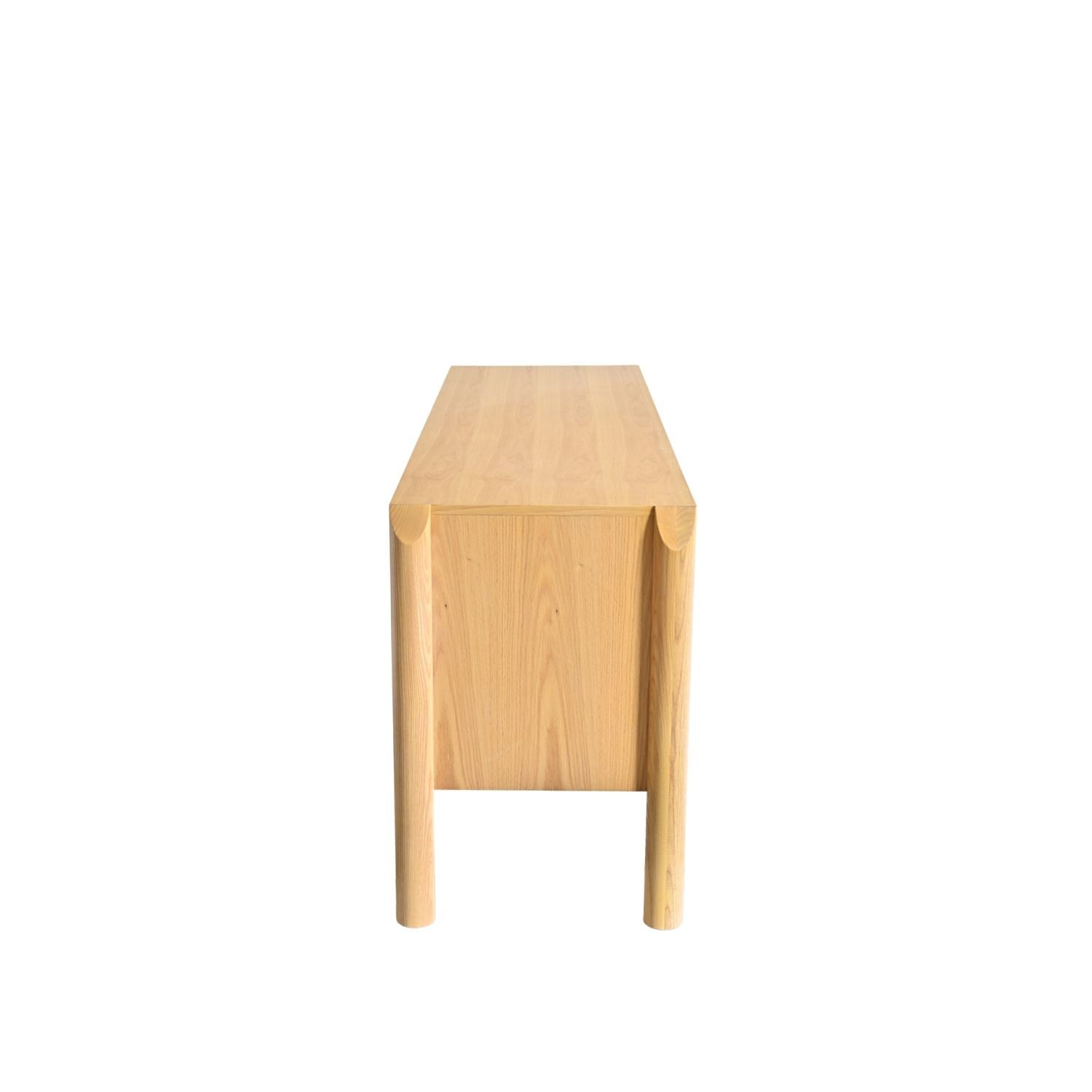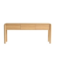 The Marly Console Table is built from solid timber, showcasing its natural grain and texture. Its simple form and round legs that taper at the top give it a subtle architectural edge. Three drawers provide generous storage without interrupting the clean lines of the design. Perfect for an entryway or living room, the Marly Console Table anchors the space while keeping essentials close at hand
