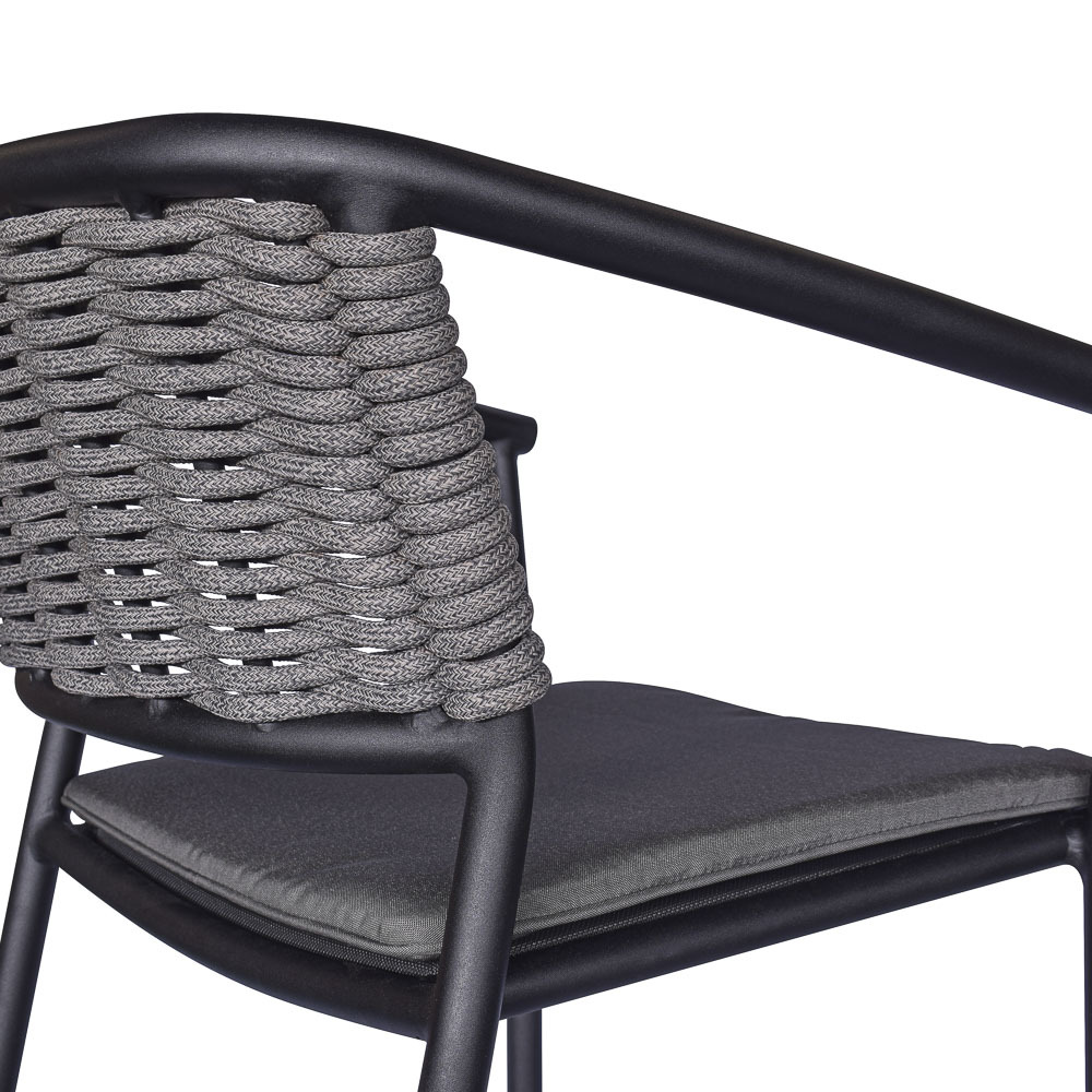 Materials: Synthetic rope weaved backrest with aluminium frame