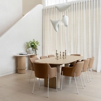 The Martin Armchair adds effortless style to any dining space with its classic silhouette and versatile design. Upholstered in smooth vegan leather with sleek minimal legs, it features supportive armrests for comfort during long meals or work sessions and transitions seamlessly from dining table to home workspace.