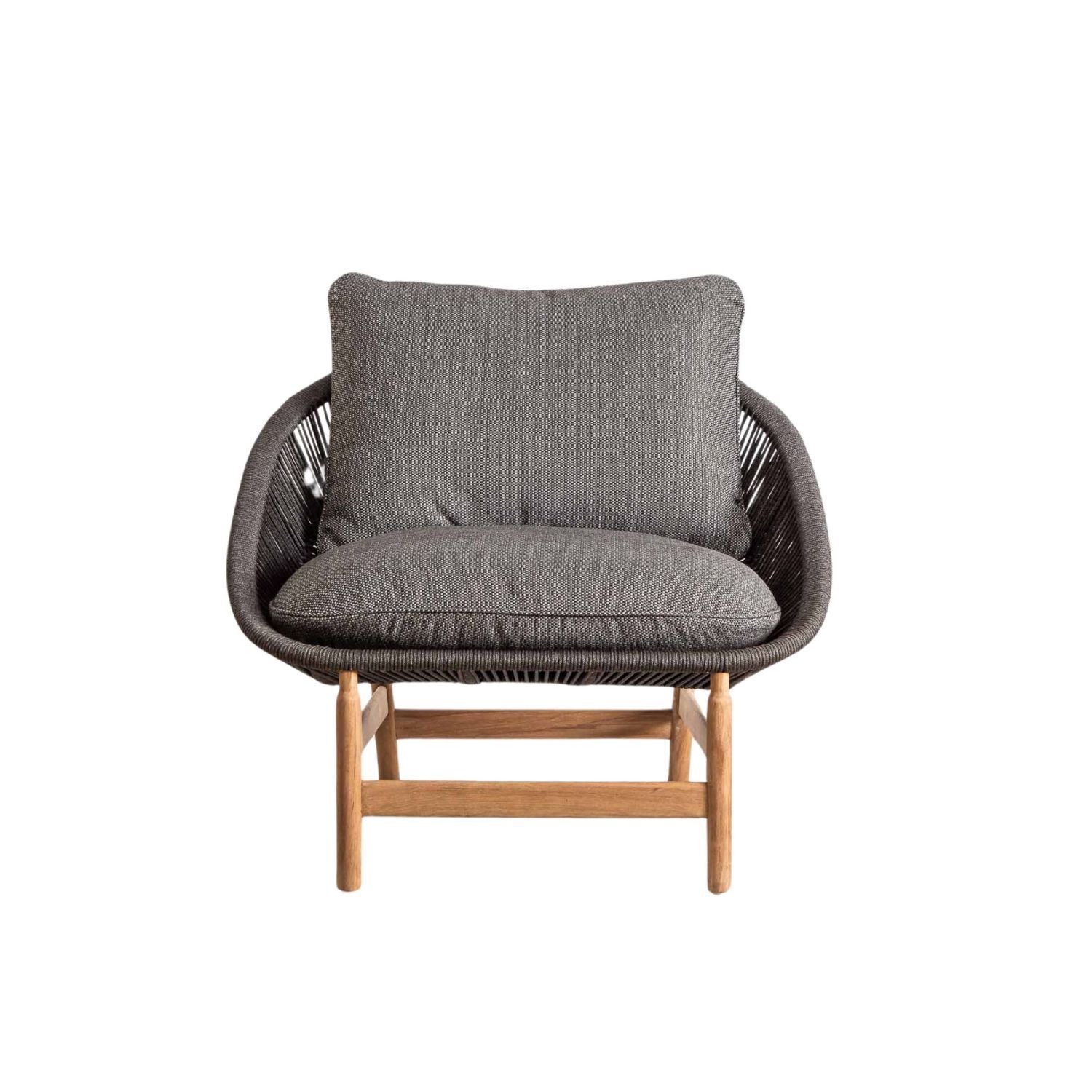 The Matera Lounge Chair captures the essence of modern, outdoor luxury with its inviting curved silhouette and durable teak frame. Enhanced by intricate rope detailing, it adds a visually striking contrast and tactile dimension to any outdoor space.