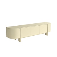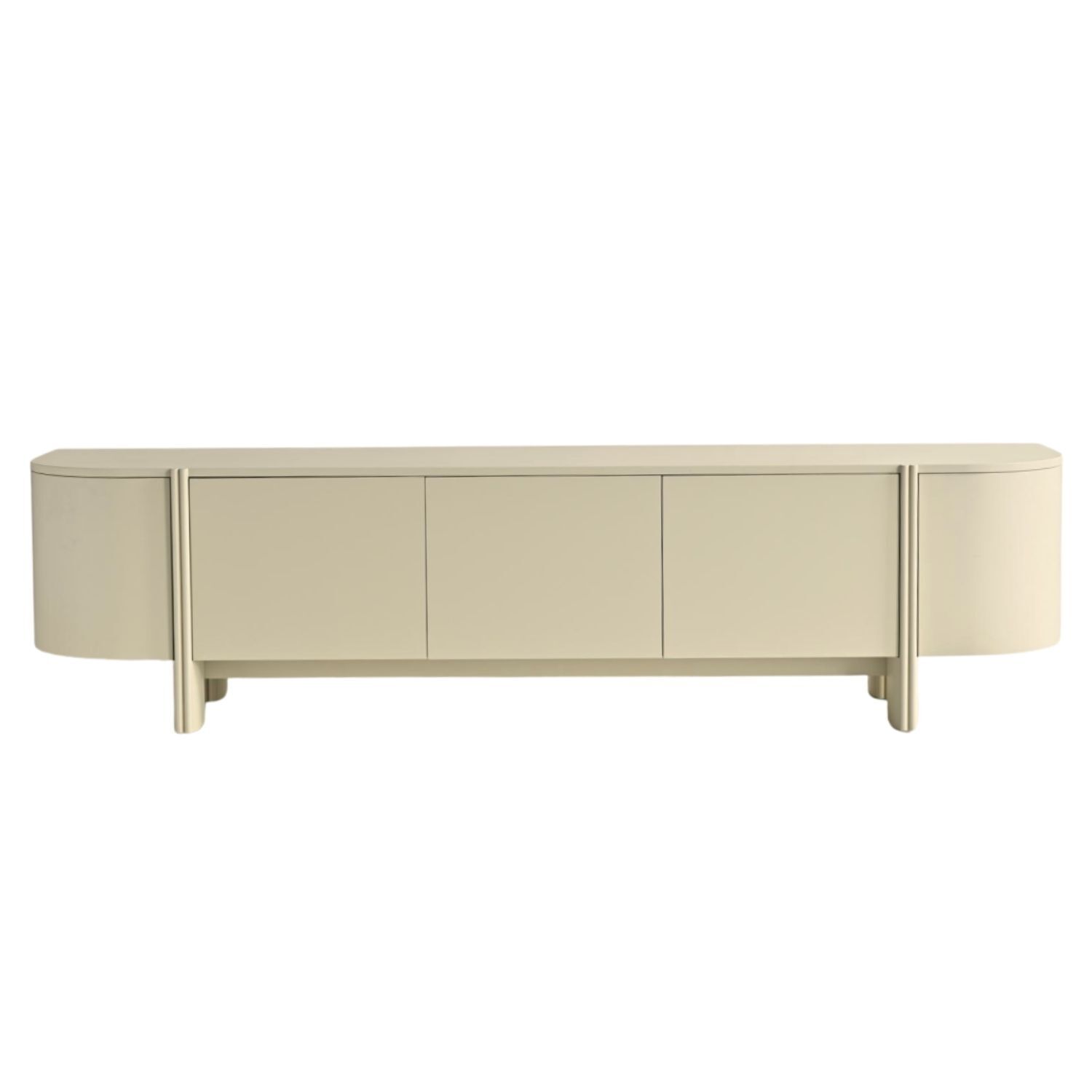 The Maverick Entertainment Unit is defined by its wide, low-profile form and sculptural presence, bringing a sense of calm structure to the living space. Its softly rounded ends introduce an organic silhouette, while a simple raised base gives the piece a light and open feel. Three flush, handle free doors sit neatly at the centre, framed by slender rounded pillars that create subtle rhythm across the façade. Maverick offers generous concealed storage while maintaining a quiet, architectural presence suited to contemporary interiors.