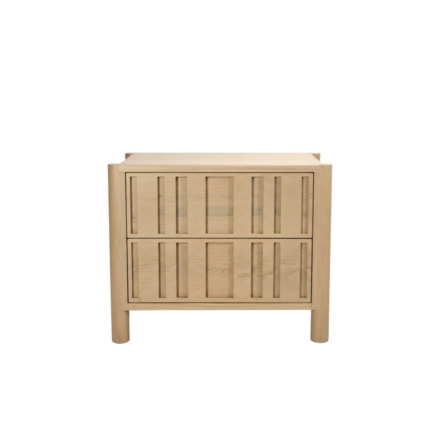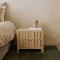 Deep linear grooving gives the Mikko bedside it's distinctive character. Two wide drawers are set within a solid timber form, with bold panel detailing that celebrates grain and texture. Grounded and confident, Mikko anchors the bedroom with presence while delivering generous everyday storage. Its rich timber finish brings warmth and depth to pared back interiors.
