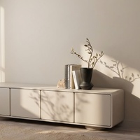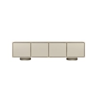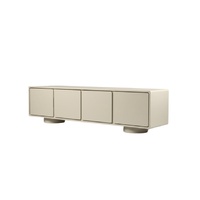 The Morgan Entertainment Unit embodies form and elegance. Its clay lacquer finish is soft to the eye and smooth to the touch a warm, lived-in neutral that earns its place in any interior palette. Four panel-front doors conceal practical storage behind a seamlessly composed facade, while a pair of cylindrical feet lend an almost architectural quality to the base.