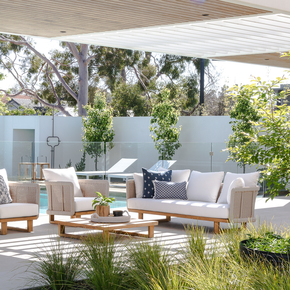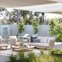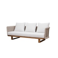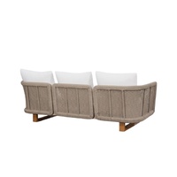 The Norfolk Sofa invites you to sink into it's cocooned rope frame, designed to wrap around the front for an intimate, enveloping feel. Supported on solid teak legs and upholstered in weather-resistant Sunbrella, it withstands sun and rain without losing shape or comfort. Ideal for lounging or entertaining, it blends effortless style with outdoor durability.