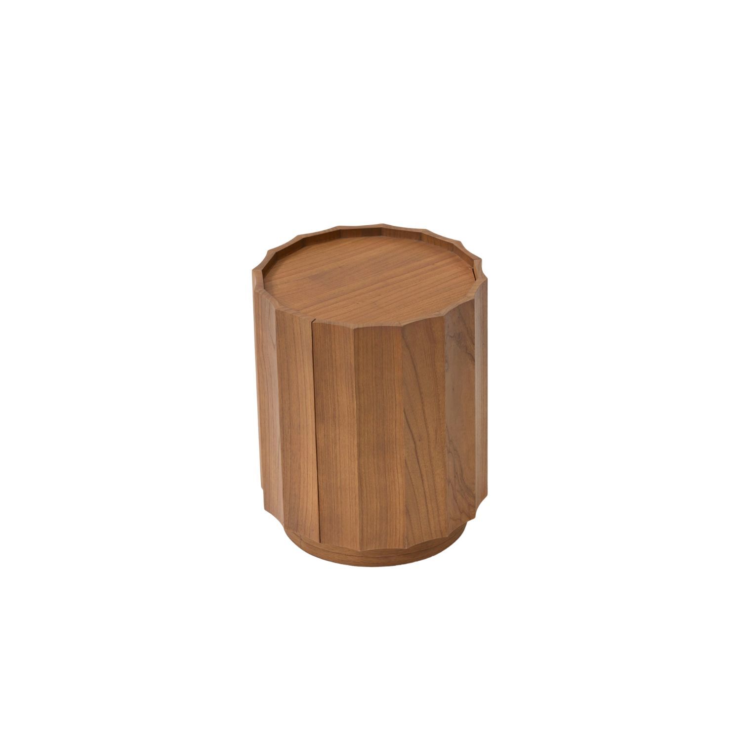 The Paolo Bedside is defined by its sculpted timber profile and curved silhouette. Featuring a single door with seamless joinery,  it adds a subtle texture and depth to the bedroom