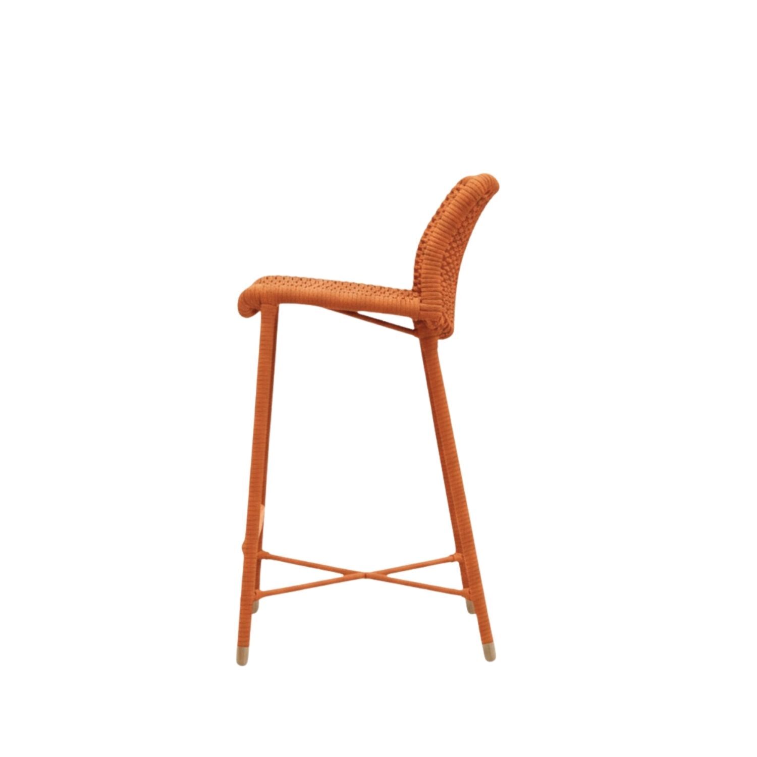Rain brings a soft rhythm to outdoor and indoor settings with a profile that feels calm and grounded. Its curved back wraps with an easy presence while the woven synthetic rope introduces a natural line that handles weather, daily use and simple upkeep with ease. The stool can be tailored in your preferred rope finish and comes in kitchen or bar height, allowing it to settle effortlessly into a wide range of spaces.
