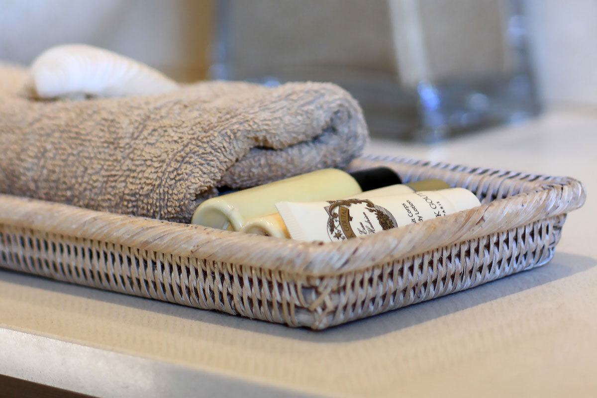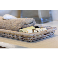Add a little bit of 'resort style' into your life with these beautifully finished rattan towel trays. Designed for bathrooms to hold hand towels, soap and bathroom bottle arrangements.  These versatile trays can also be used to display or store items around your home.