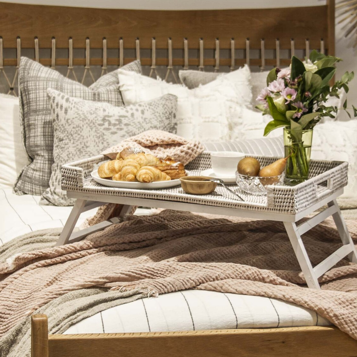 Upgrade your breakfast experience with our exquisite rattan breakfast tray. Crafted with intricate weaving patterns and sturdy handles, it adds a touch of elegance and convenience to your morning routine.