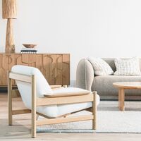 Experience ultimate comfort and style with the Reece Lounge Chair. Its stunning textured fabric exudes elegance, while the sleek oak timber construction ensures durability and invites you to unwind in luxurious relaxation.