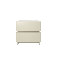 The Riku bedside layers subtle depth into the bedroom. Two flush drawers sit within a compact timber frame, their uninterrupted faces allowing the form to remain calm and composed. It's painted finish introduces a soft, muted warmth, while the timeless square silhouette adds presence within the space.