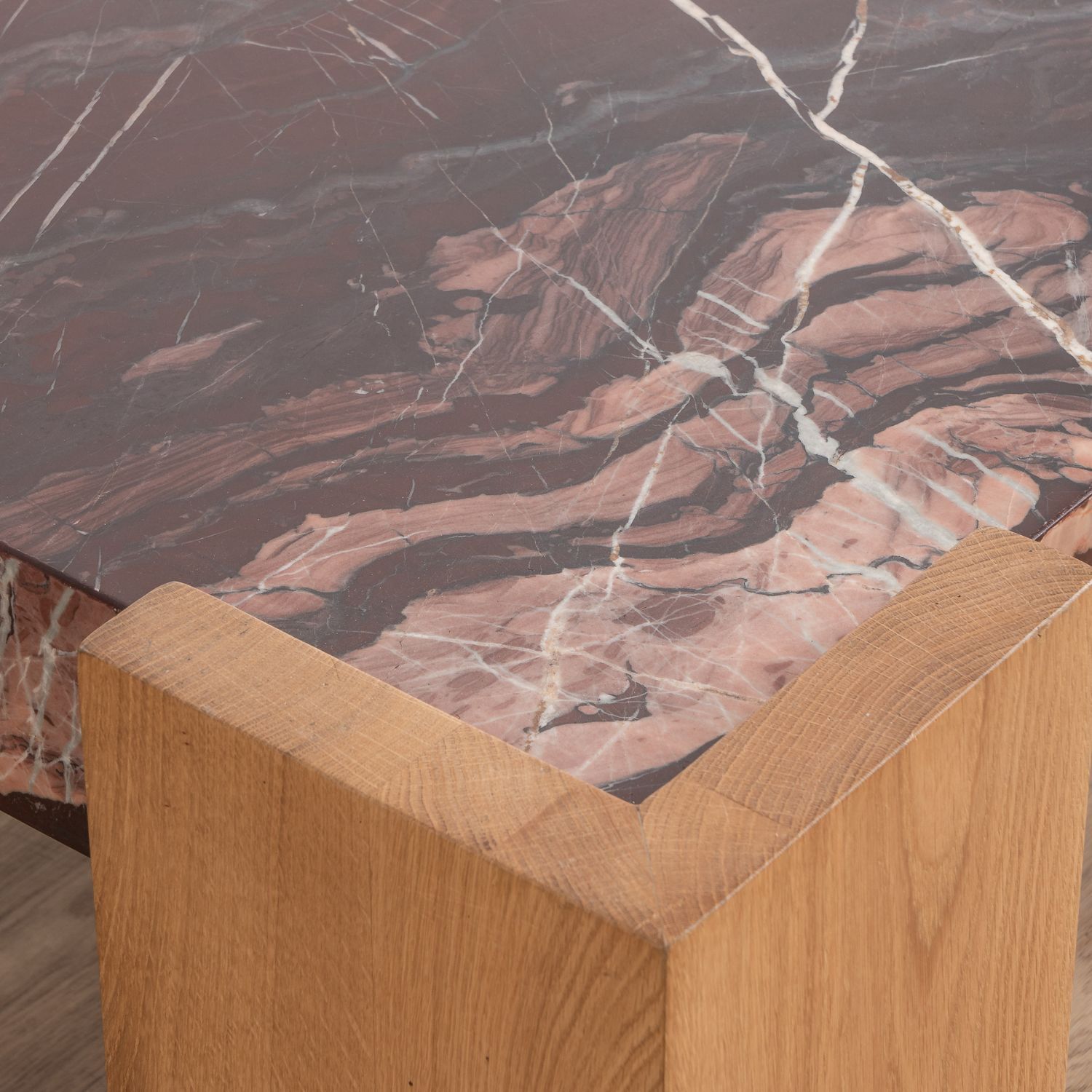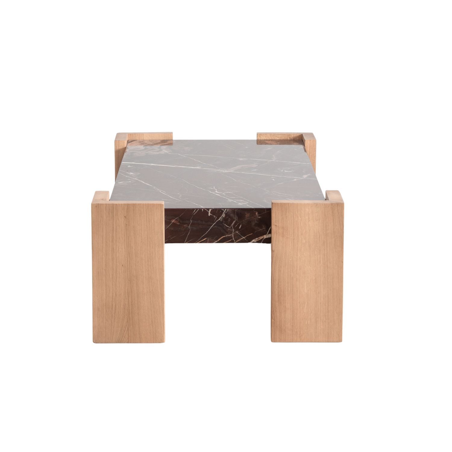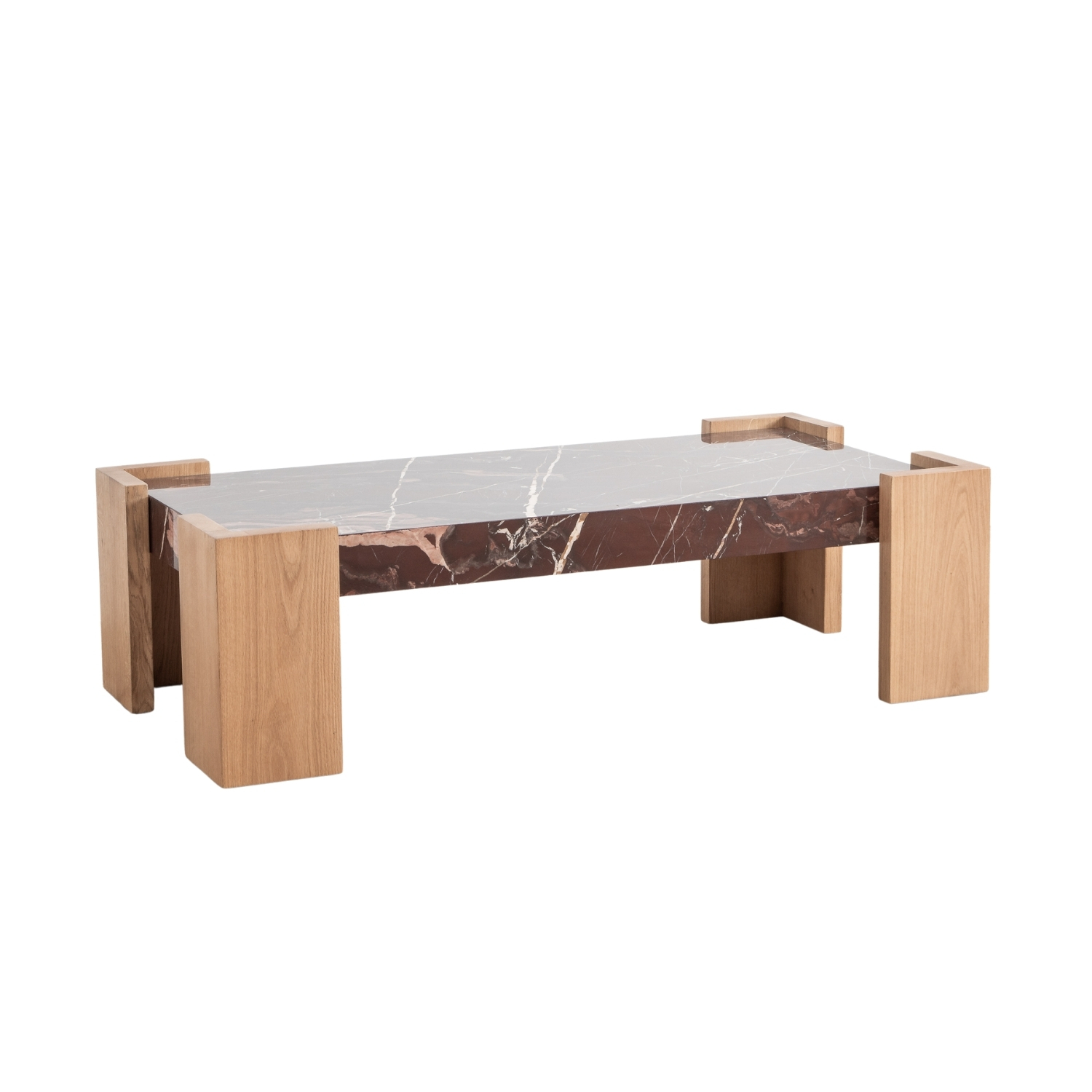 The Samson Coffee Table is a striking blend of a marble top with oak legs. A commanding coffee table that offers functionality and style.